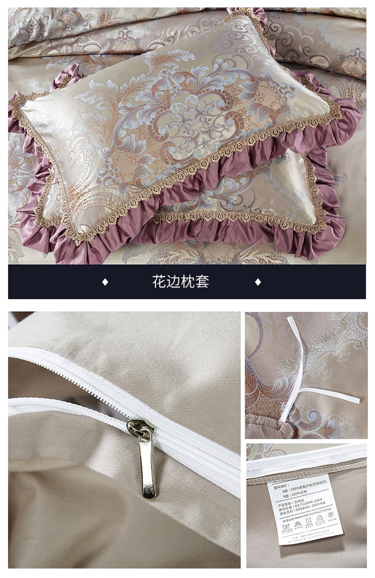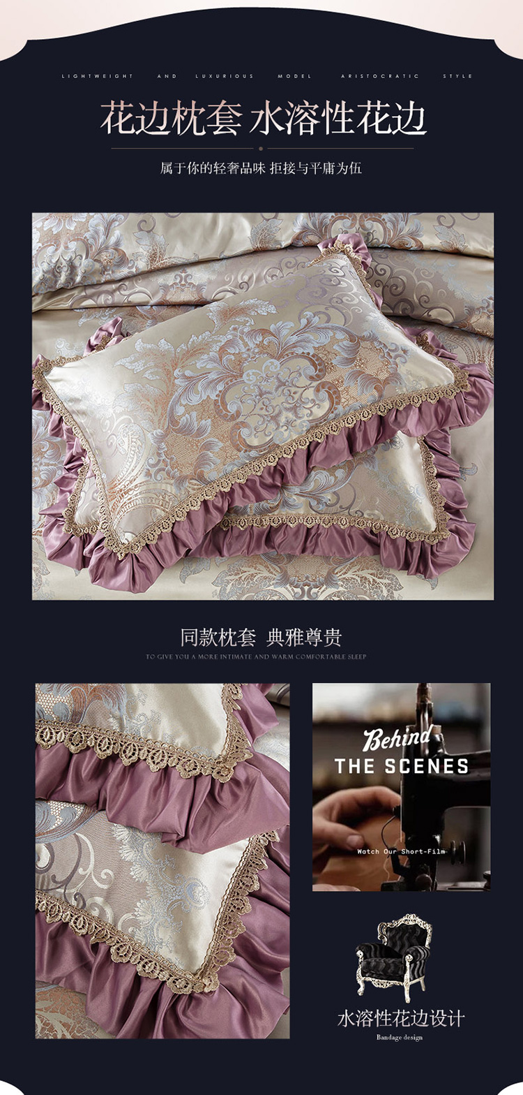 (总)兴美佳家纺 高档奢华欧式宫廷风加棉四件套塞娜维亚,浅驼色,浅玉色,樱花粉,优雅紫,紫灰色,靠垫套60*60