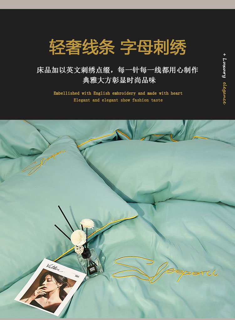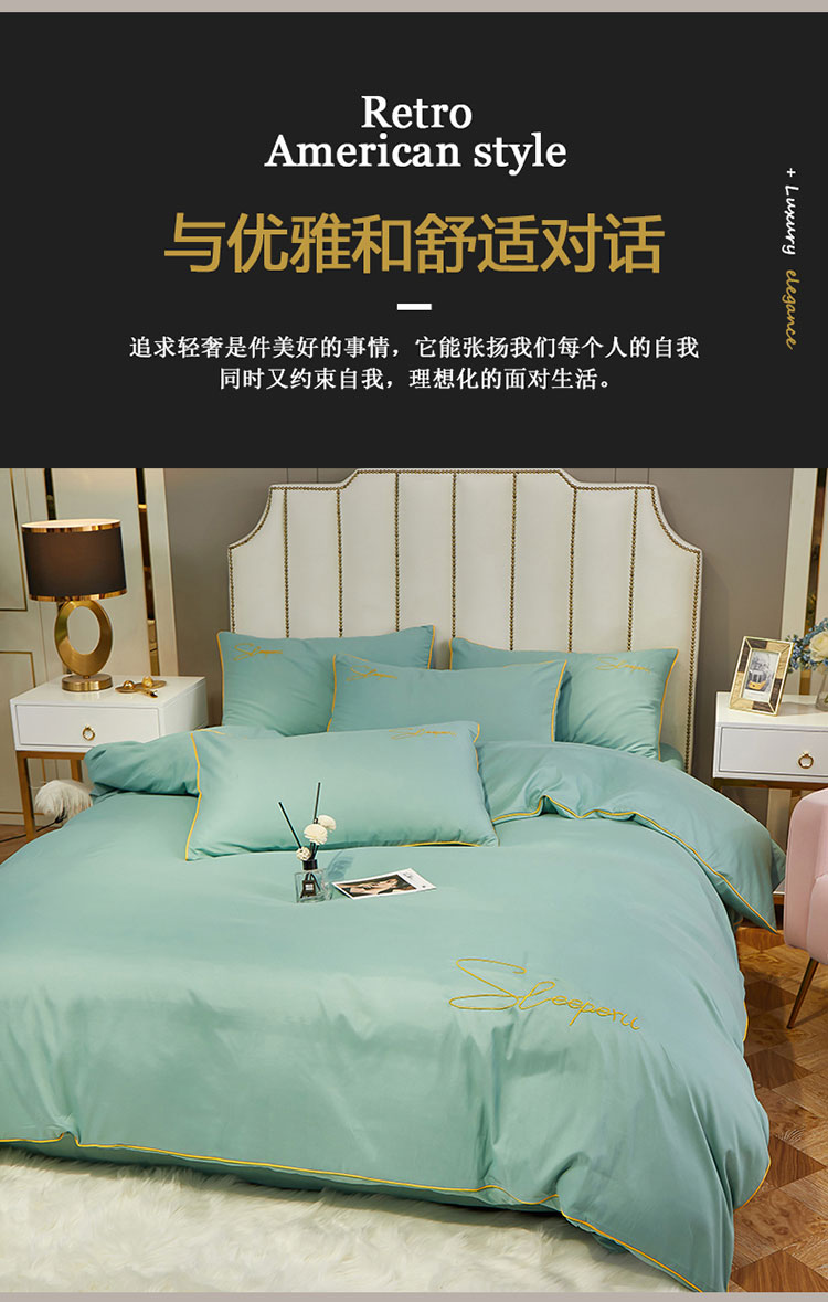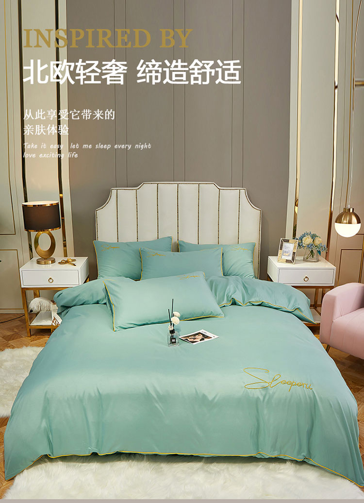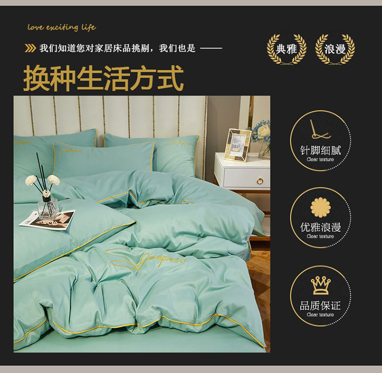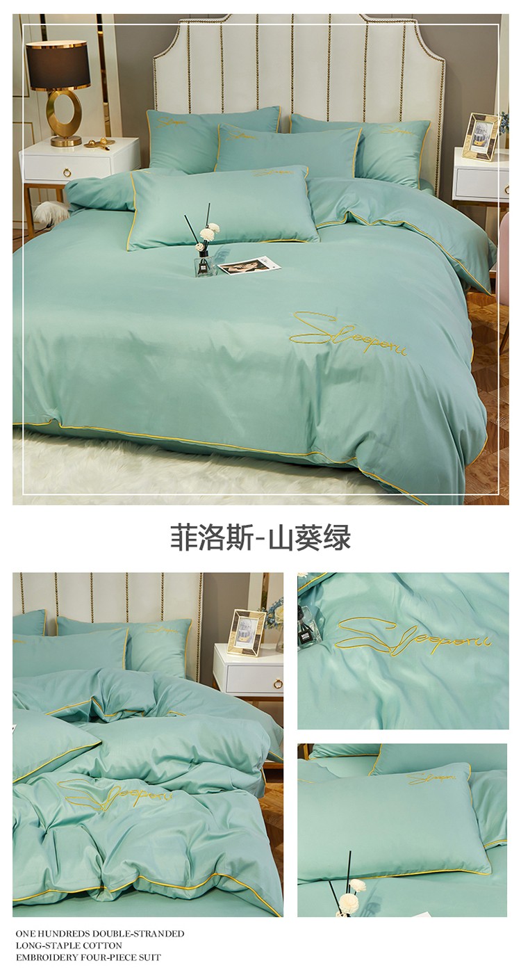 当前位置: 91家纺网 > 商品网购 > 床品套件 > 四件套 > 全棉普通四件套 > 曼谷 新款轻奢刺绣四件套菲洛斯系列 菲洛斯-山葵绿
