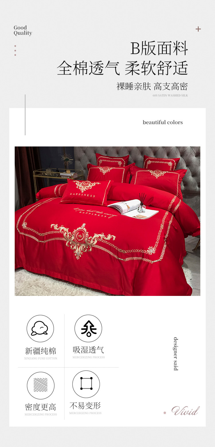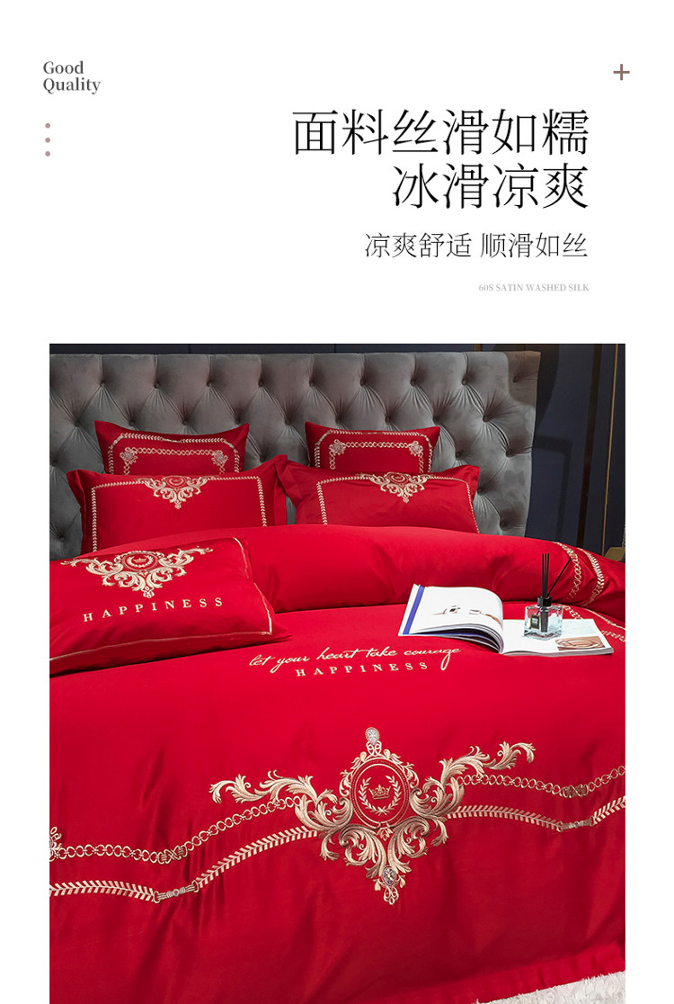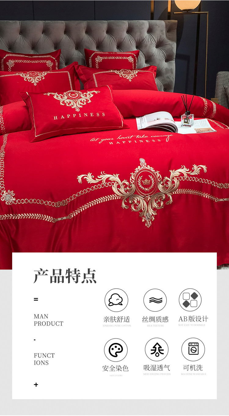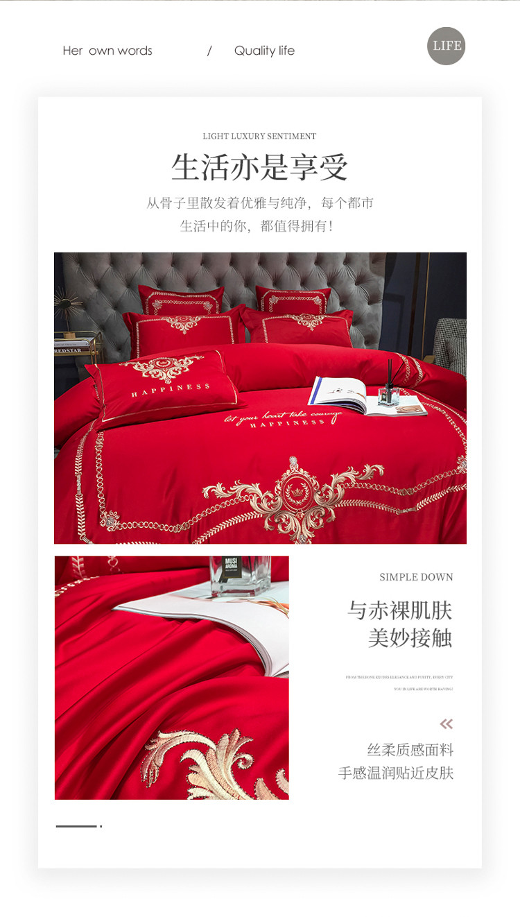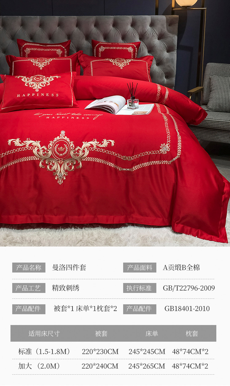 商品名称:安妮 2021新款全棉贡缎四件套曼洛系列 大红