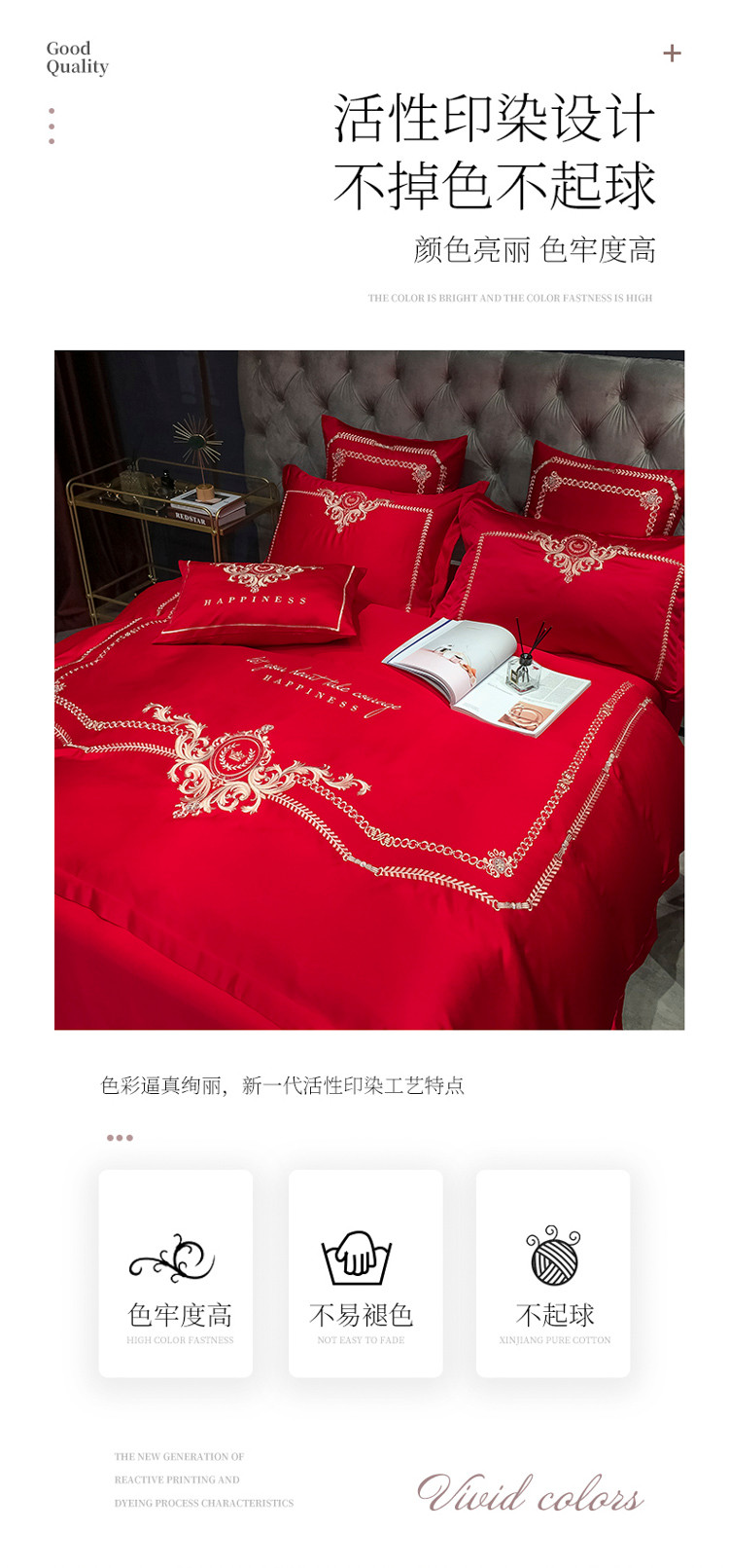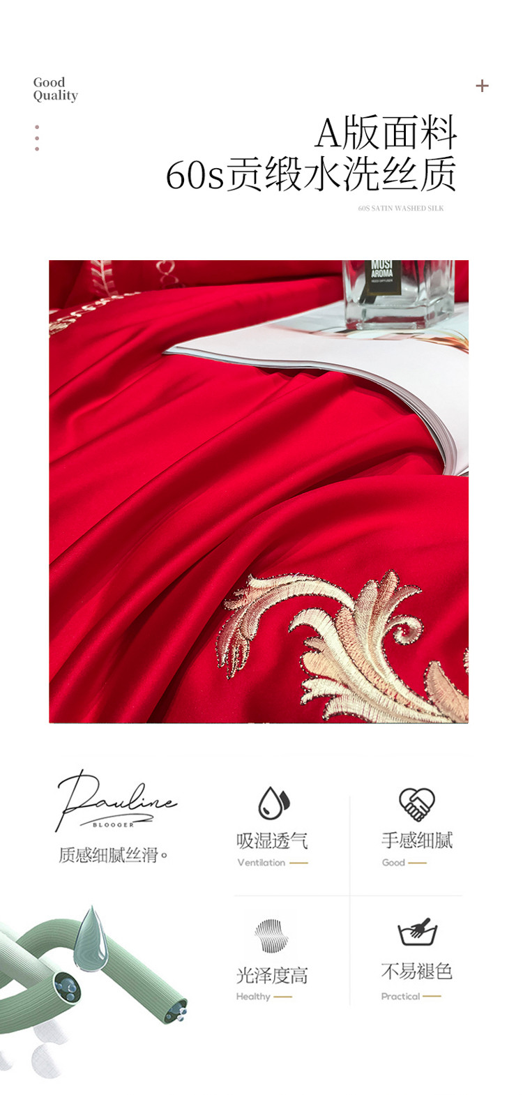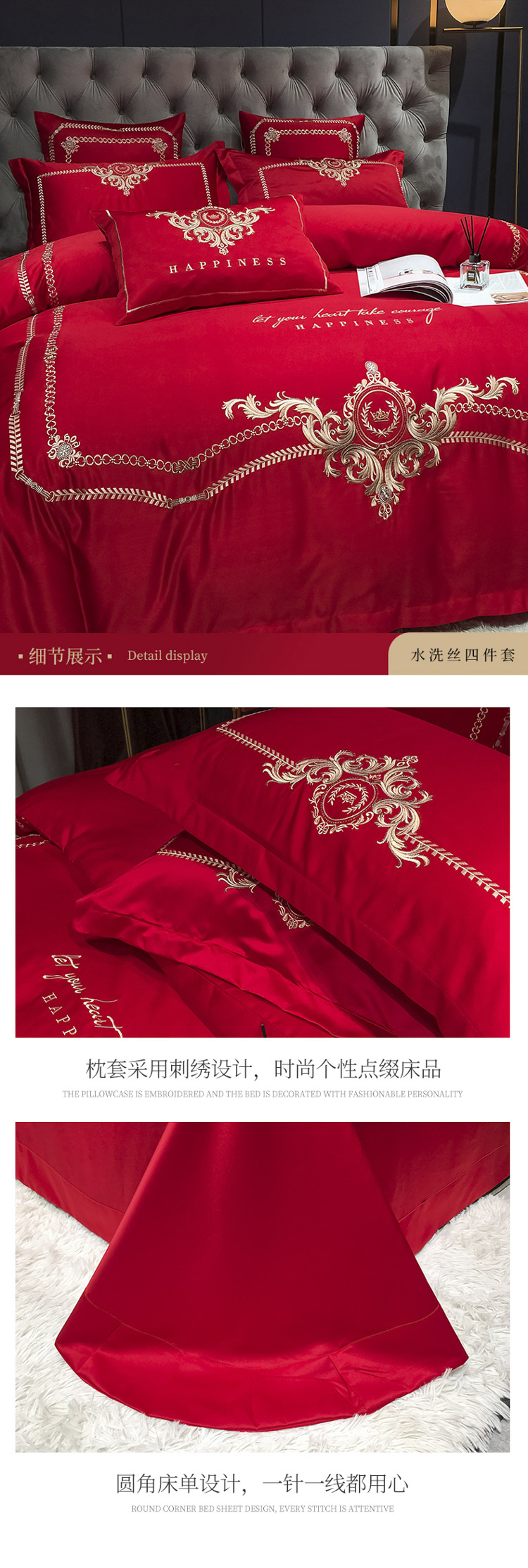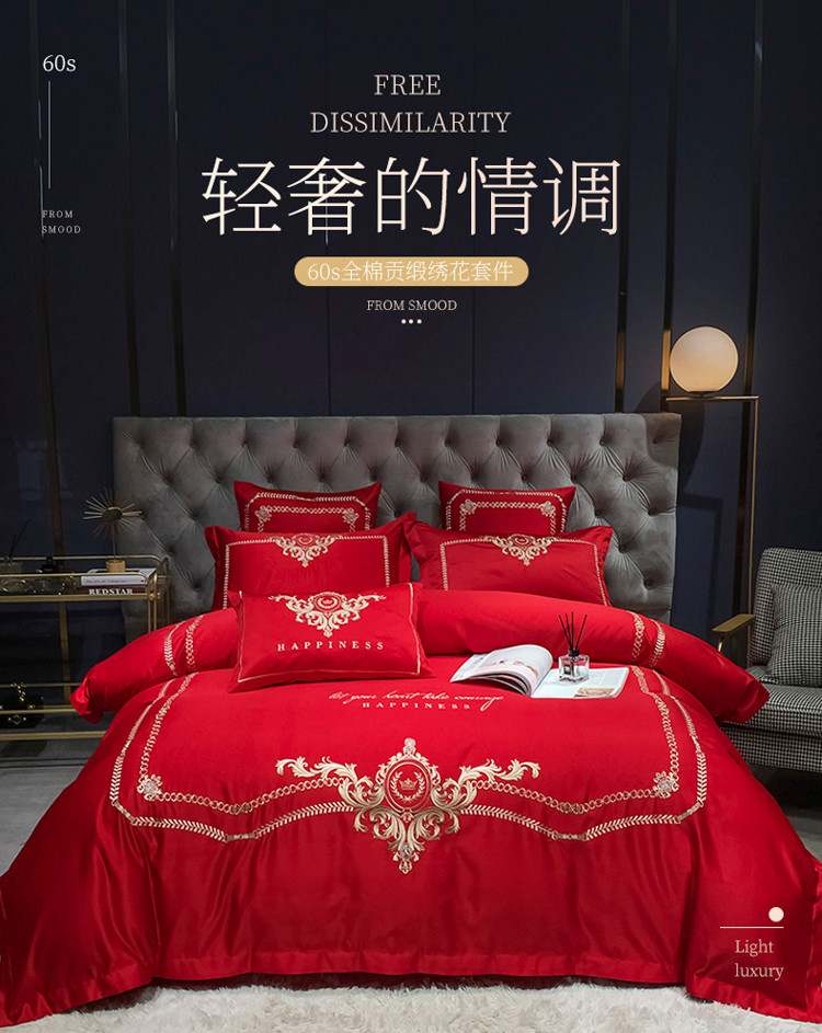 商品名称:安妮 2021新款全棉贡缎四件套曼洛系列 大红