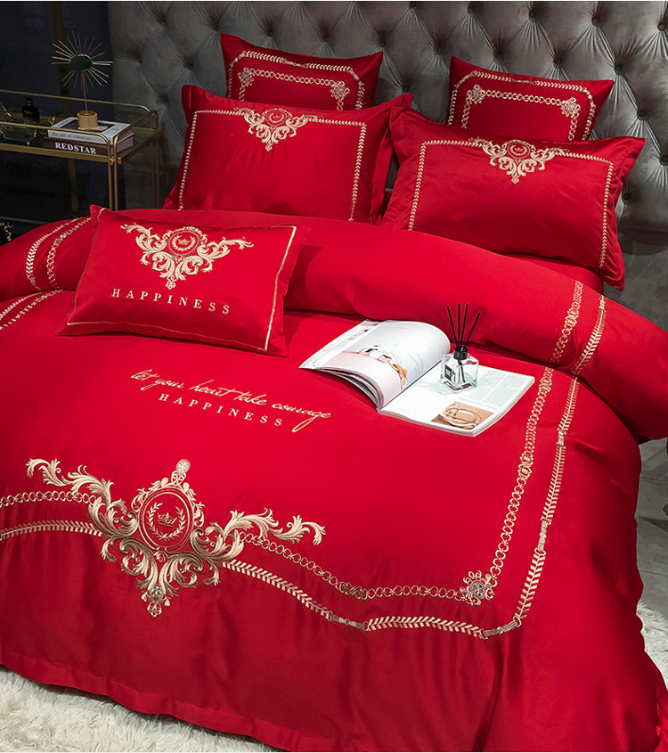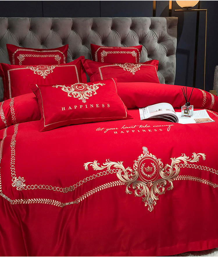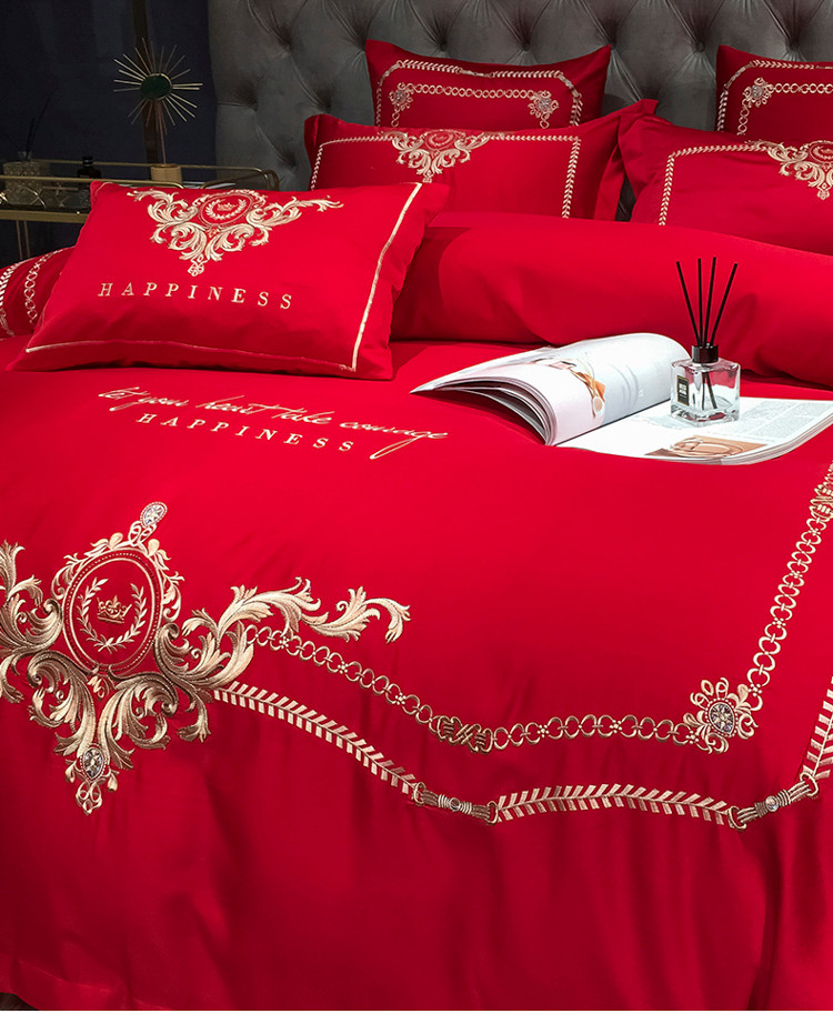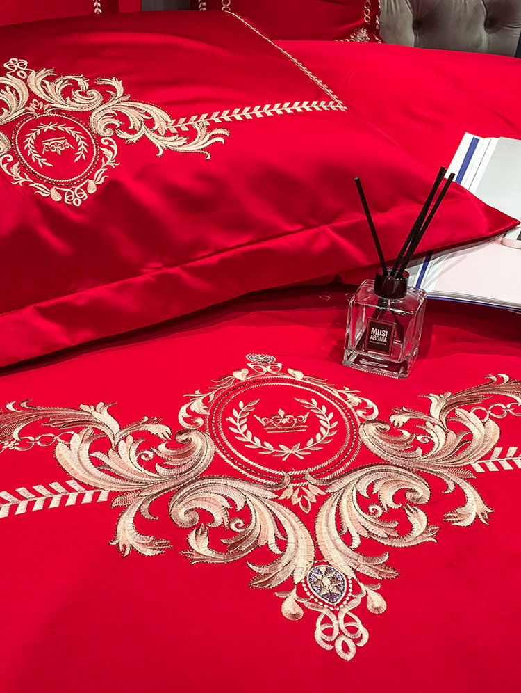 安妮 2021新款全棉贡缎四件套曼洛系列 大红