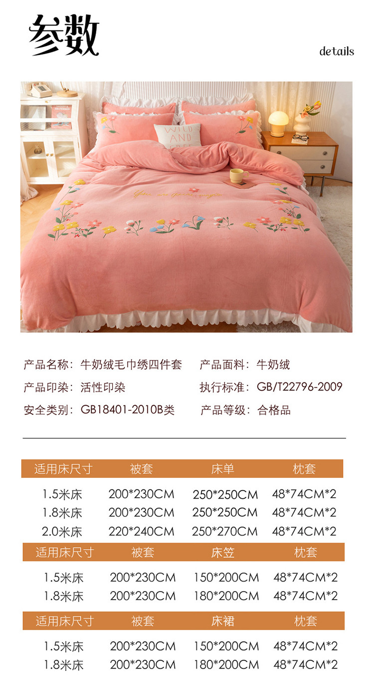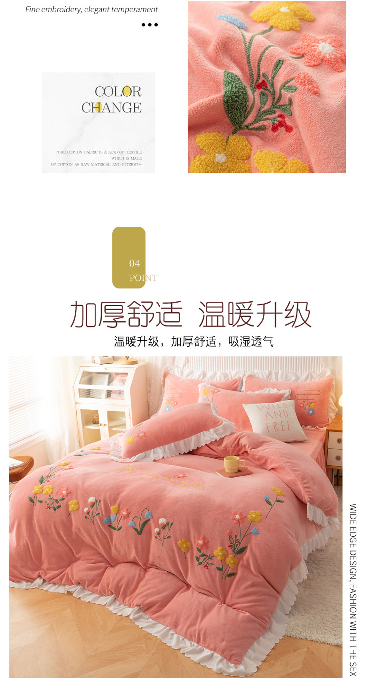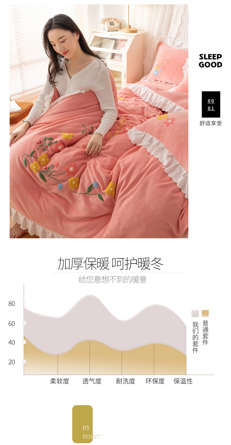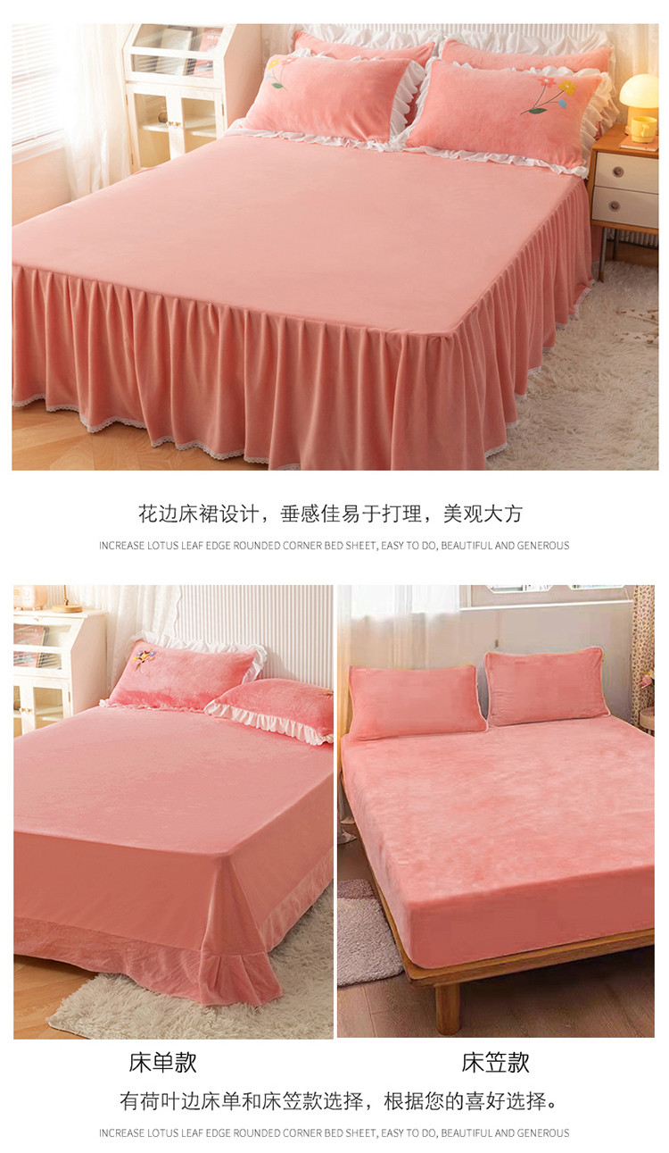 当前位置: 91家纺网 > 商品网购 > 床品套件 > 四件套 > 牛奶绒四件套 > 新品韩版花边绣花牛奶绒法莱水晶绒床单床裙款四件套 小美好玉色