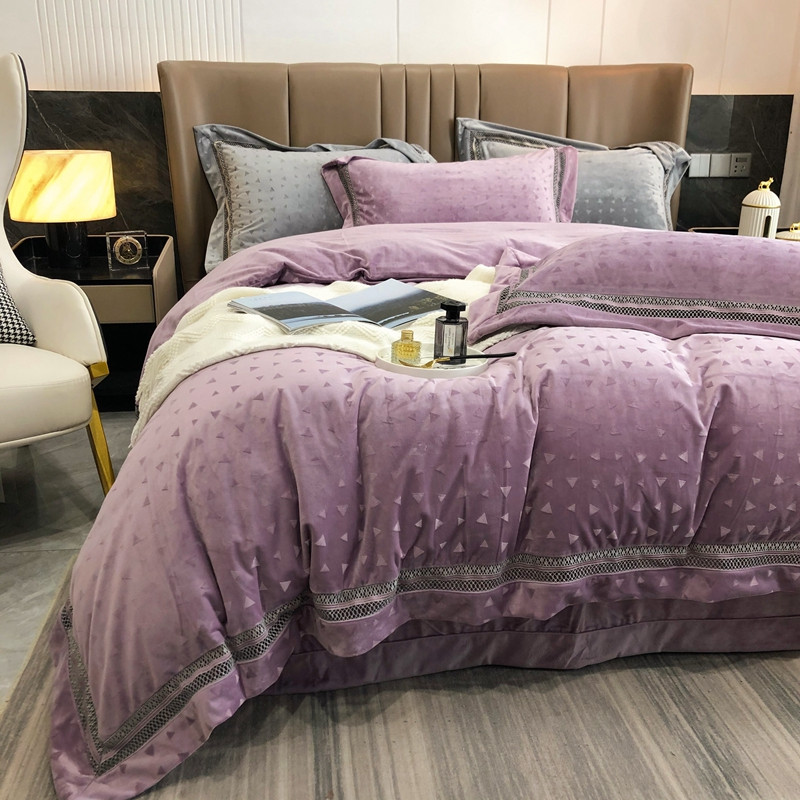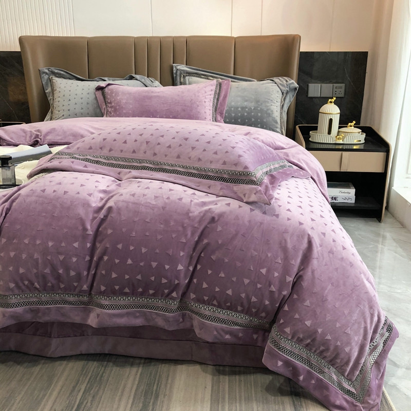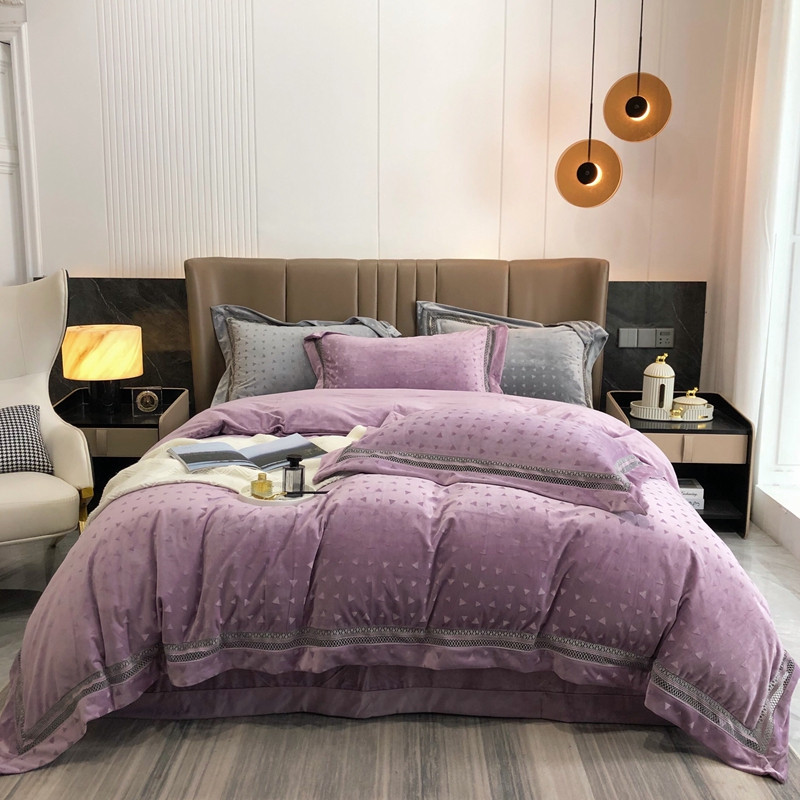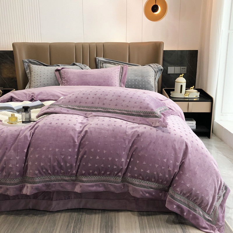 商品名称:榻尚家居 2021新款爱丽丝纯色浮雕婴肤绒四件套 爱丽丝-紫