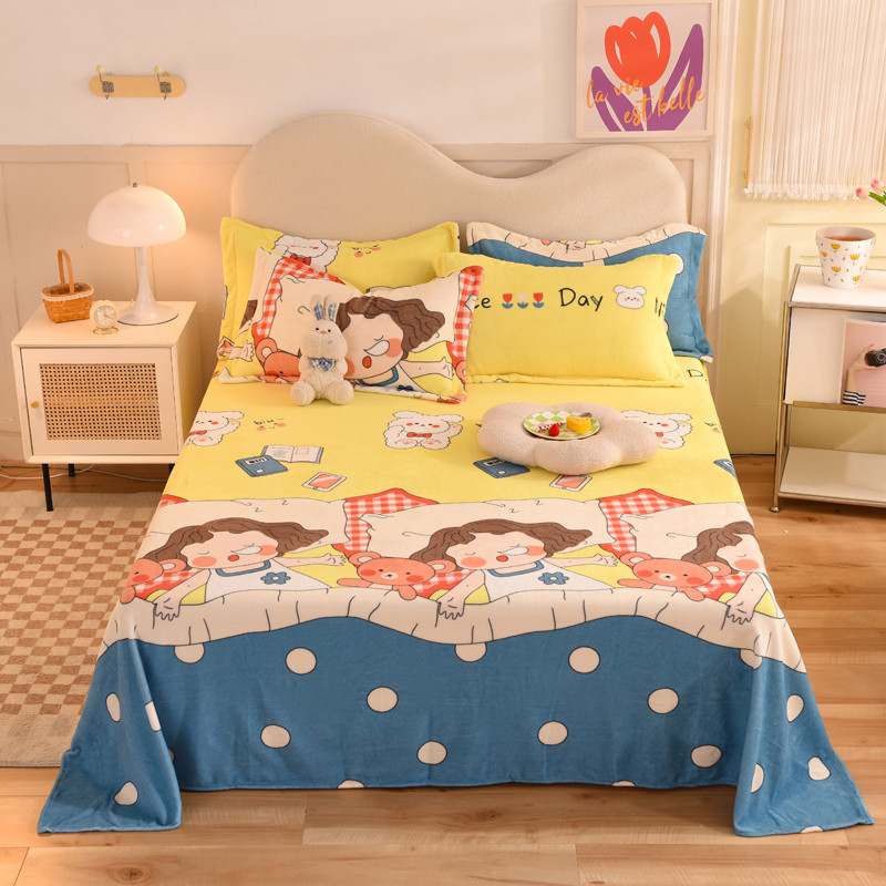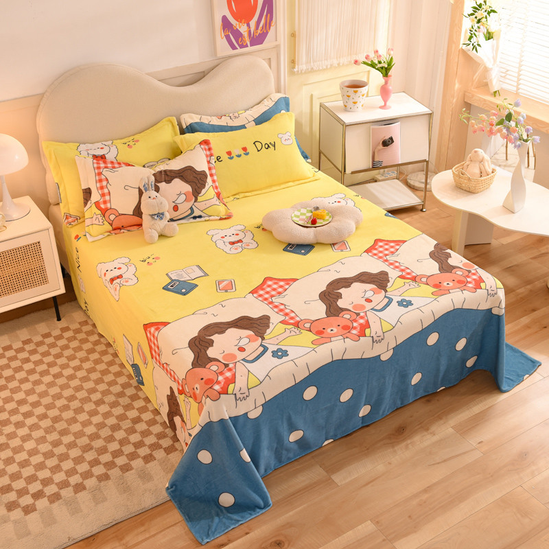 商品名称:甜之梦家纺 2025新款印花牛奶绒单品床单可定制任何尺寸 泡泡公主
