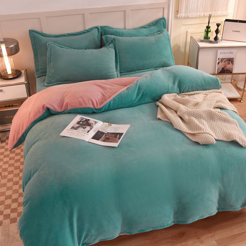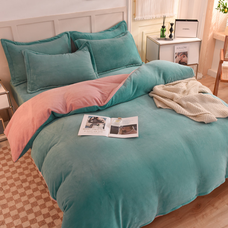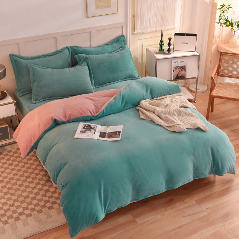 当前位置: 91家纺网 > 商品网购 > 床品套件 > 四件套 > 牛奶绒四件套 > 甜之梦家纺2025新款牛奶绒四件套(可定制尺寸) 湖绿拼色