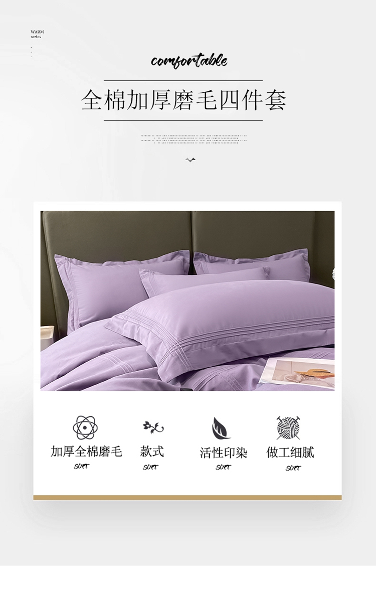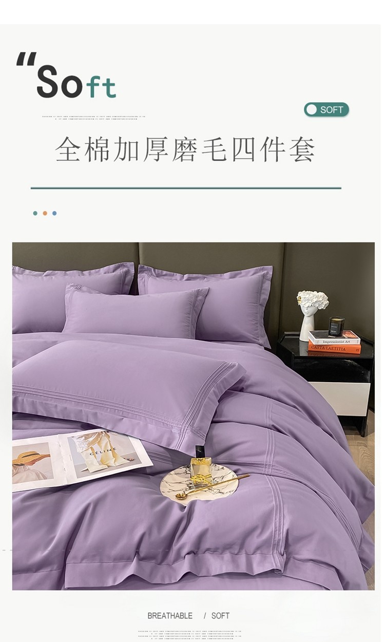 商品名称:安妮2022新款轻奢赫本加厚全棉磨毛四件套 赫本魅惑紫