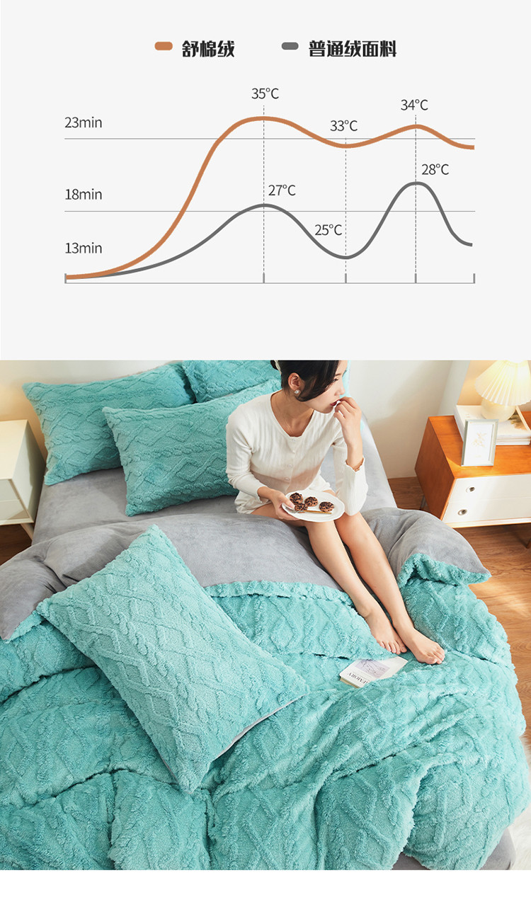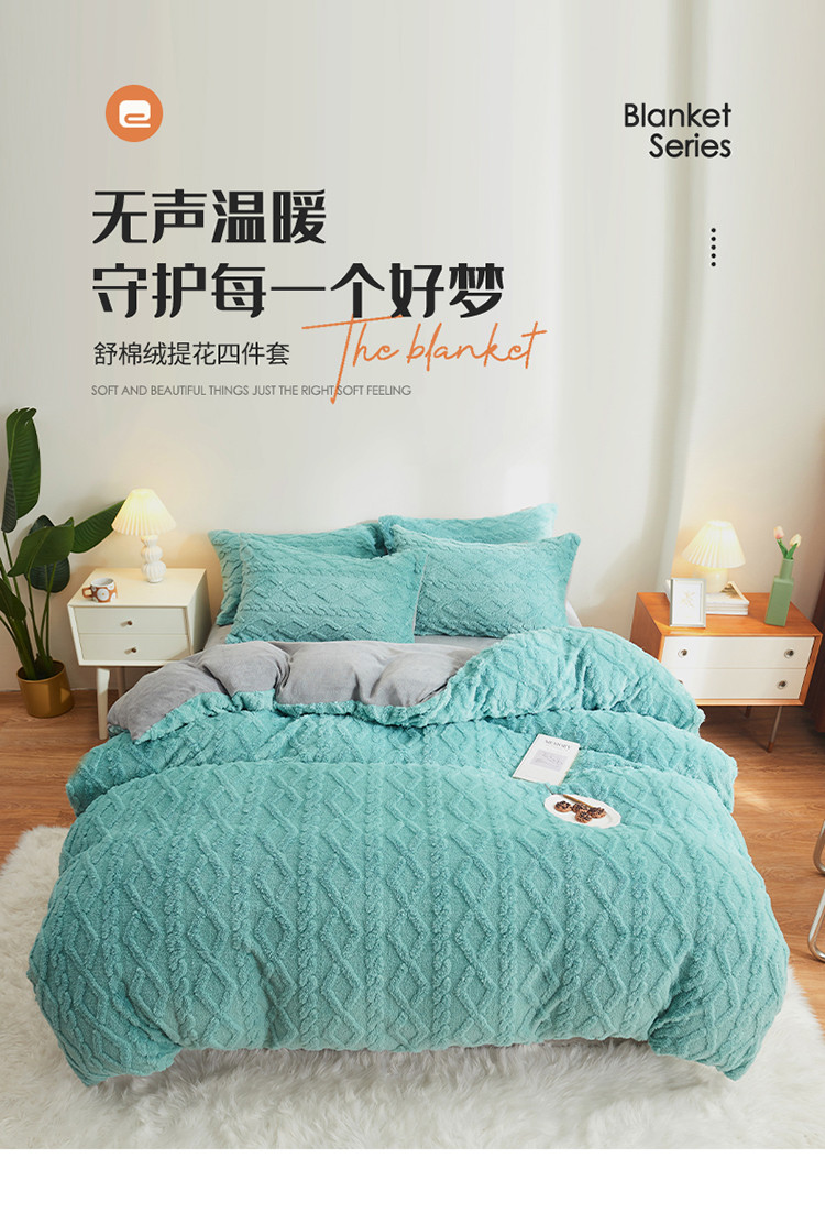 吾秀家居 2022新款舒棉绒提花四件套 舒棉绒湖兰