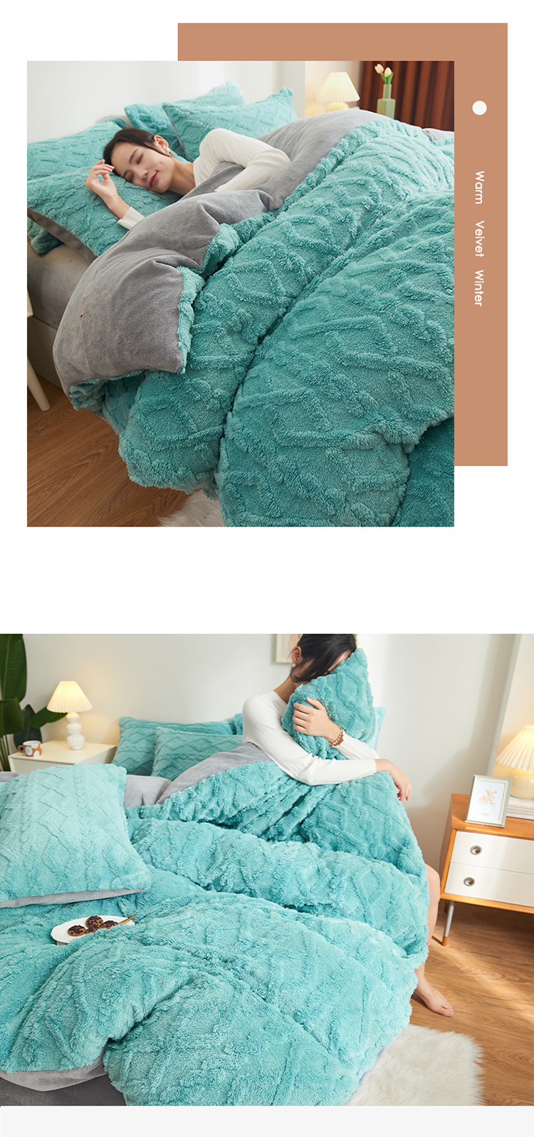 商品名称:吾秀家居 2022新款舒棉绒提花四件套 舒棉绒湖兰