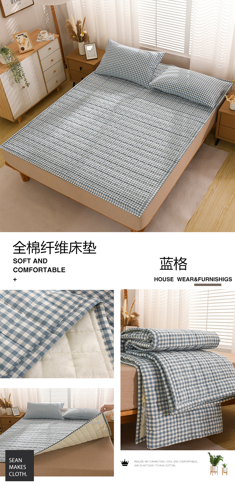 当前位置: 91家纺网 > 商品网购 > 床垫/床褥/床护垫 > 普通床垫 > 恋绒 2023新款A类全棉色织水洗棉床垫软床垫床褥垫子 水洗棉-蓝格