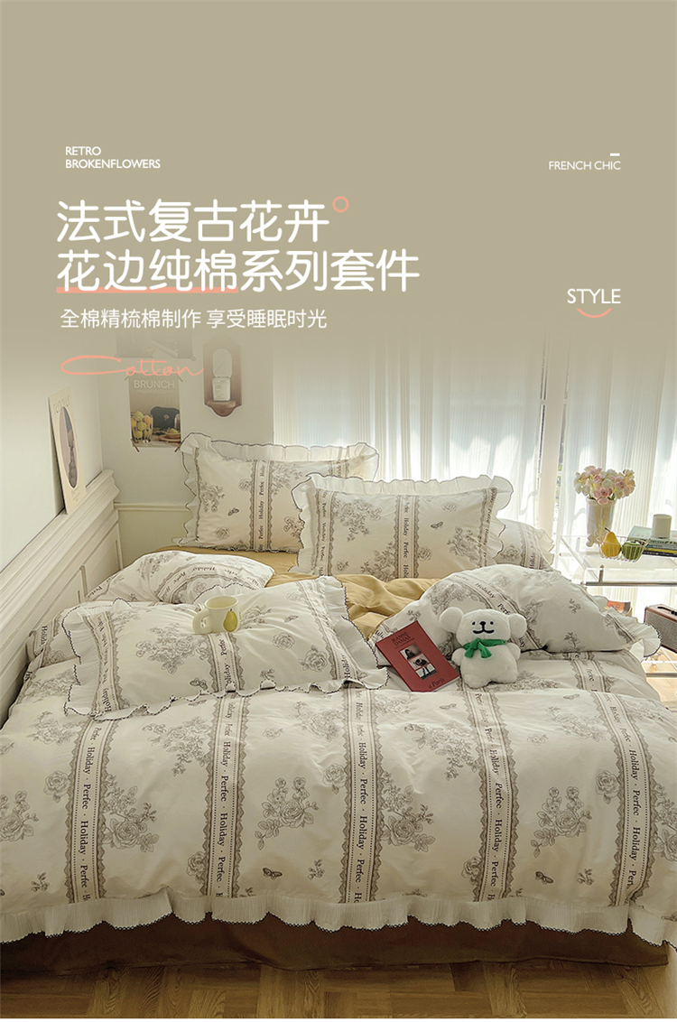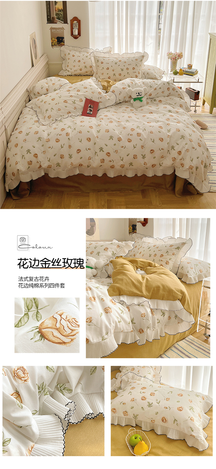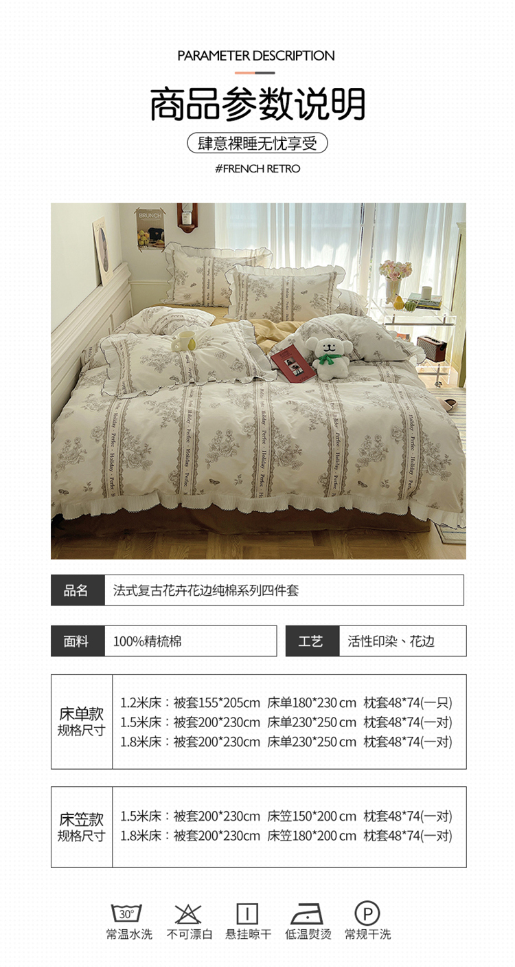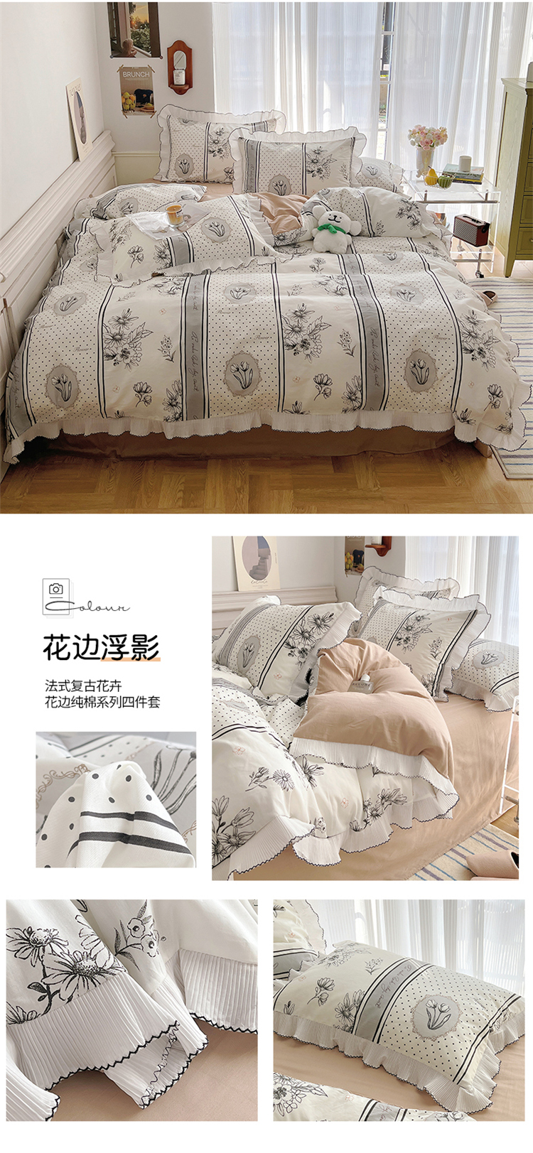商品名称:(总)桃子家居 2023新款法式复古花卉花边纯棉系列四件套