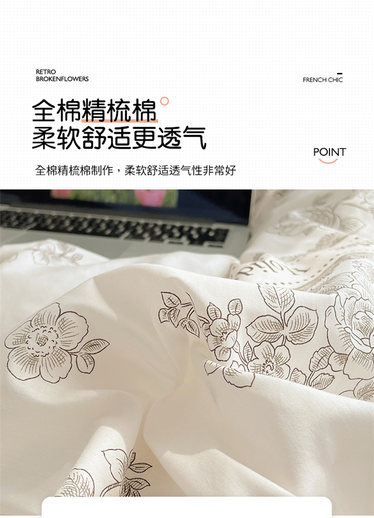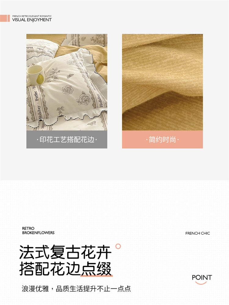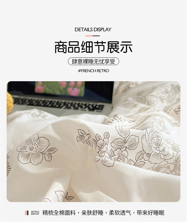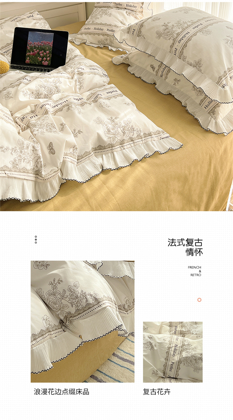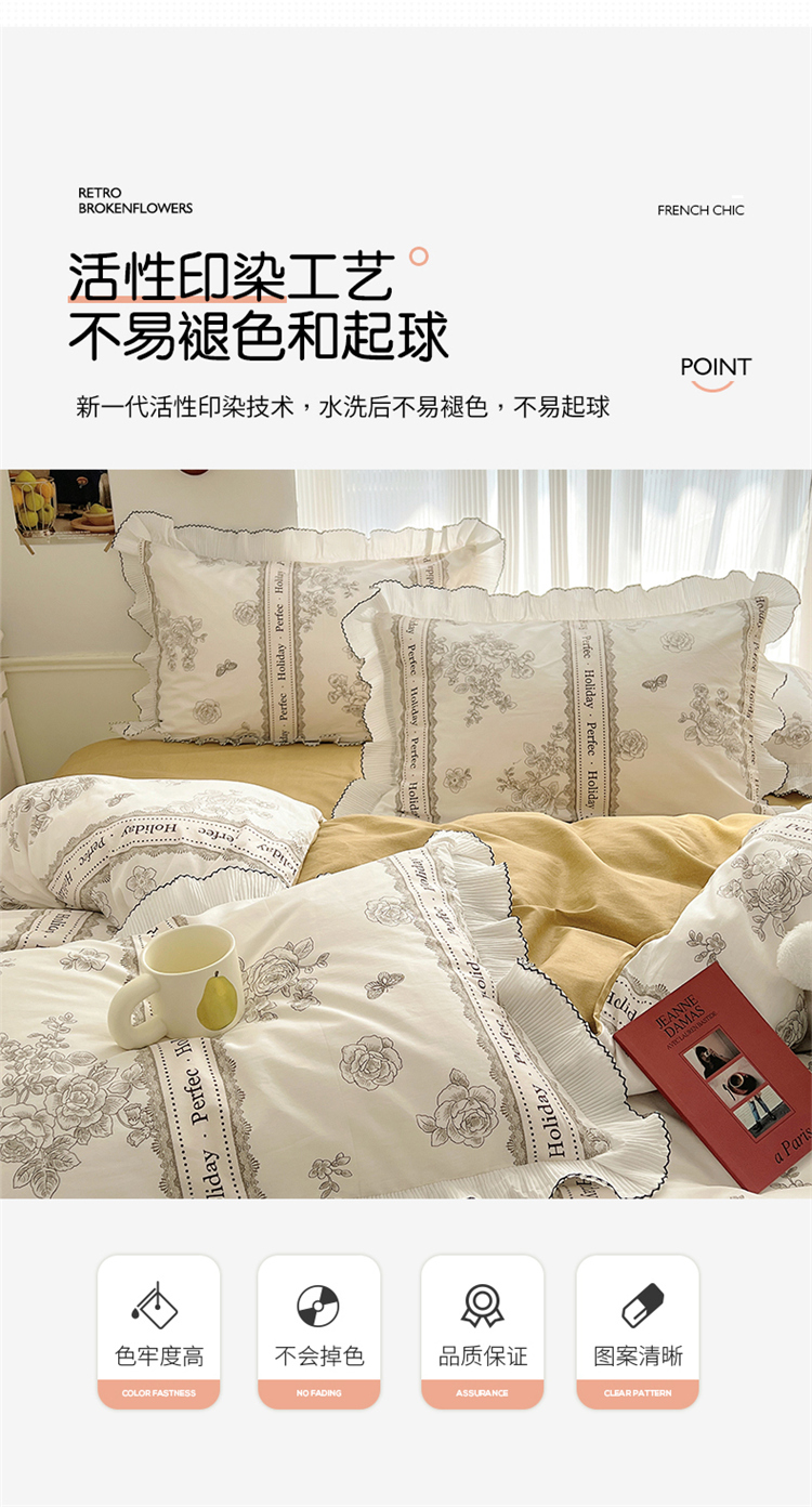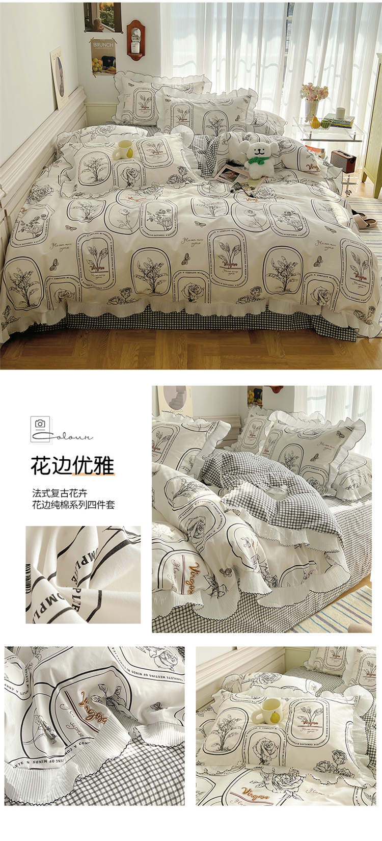 商品名称:(总)桃子家居 2023新款法式复古花卉花边纯棉系列四件套