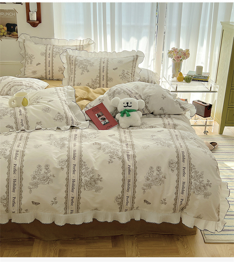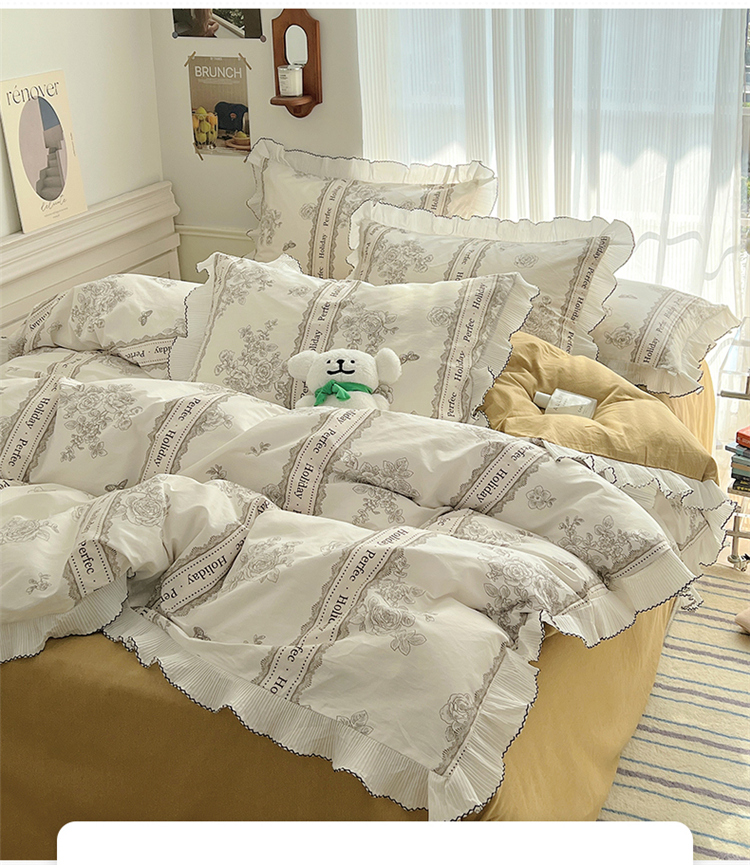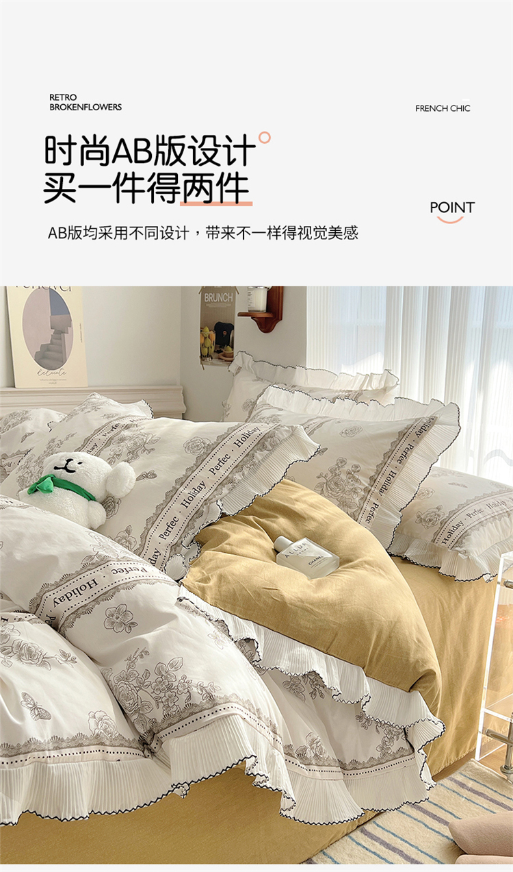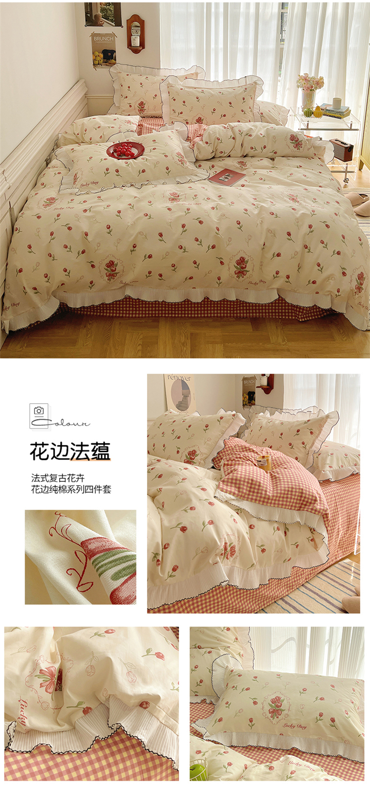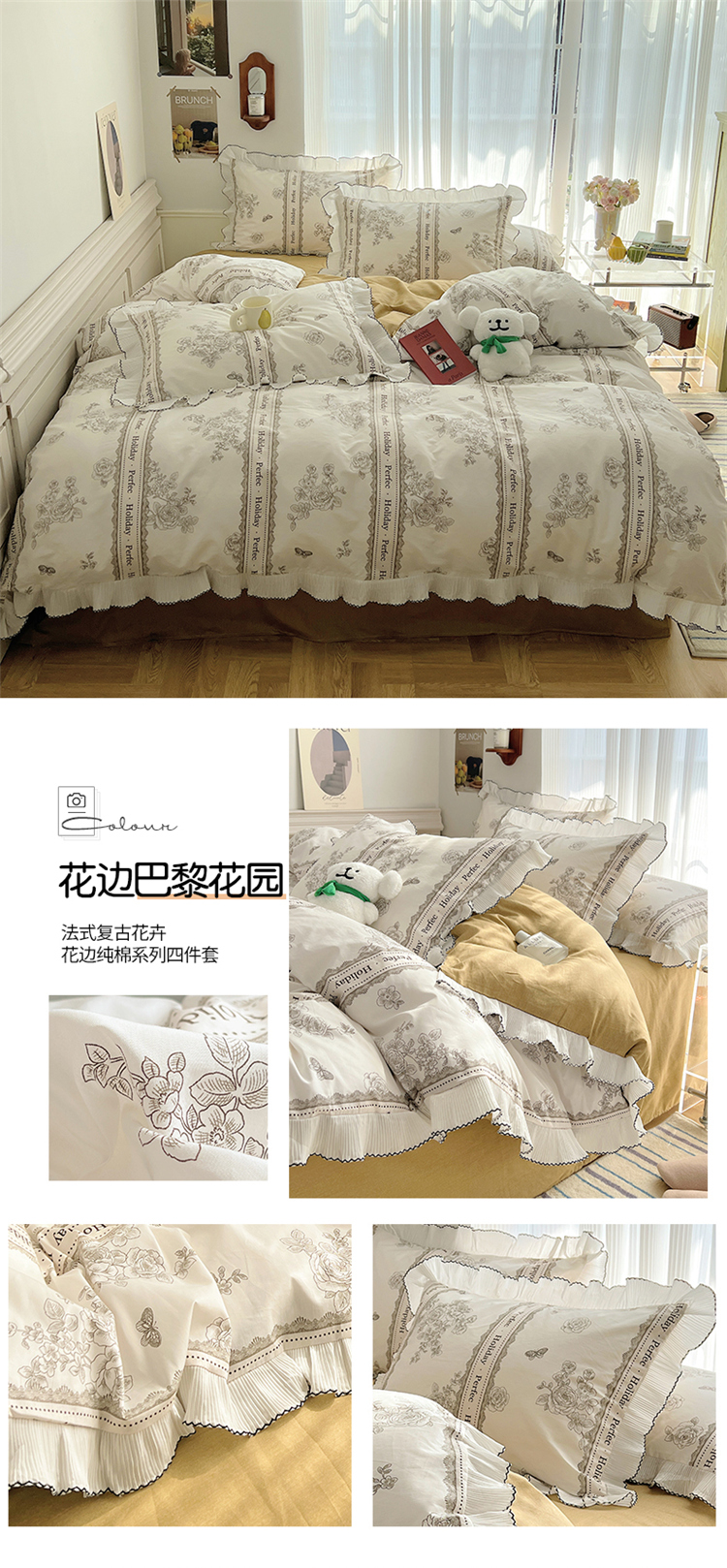 (总)桃子家居 2023新款法式复古花卉花边纯棉系列四件套