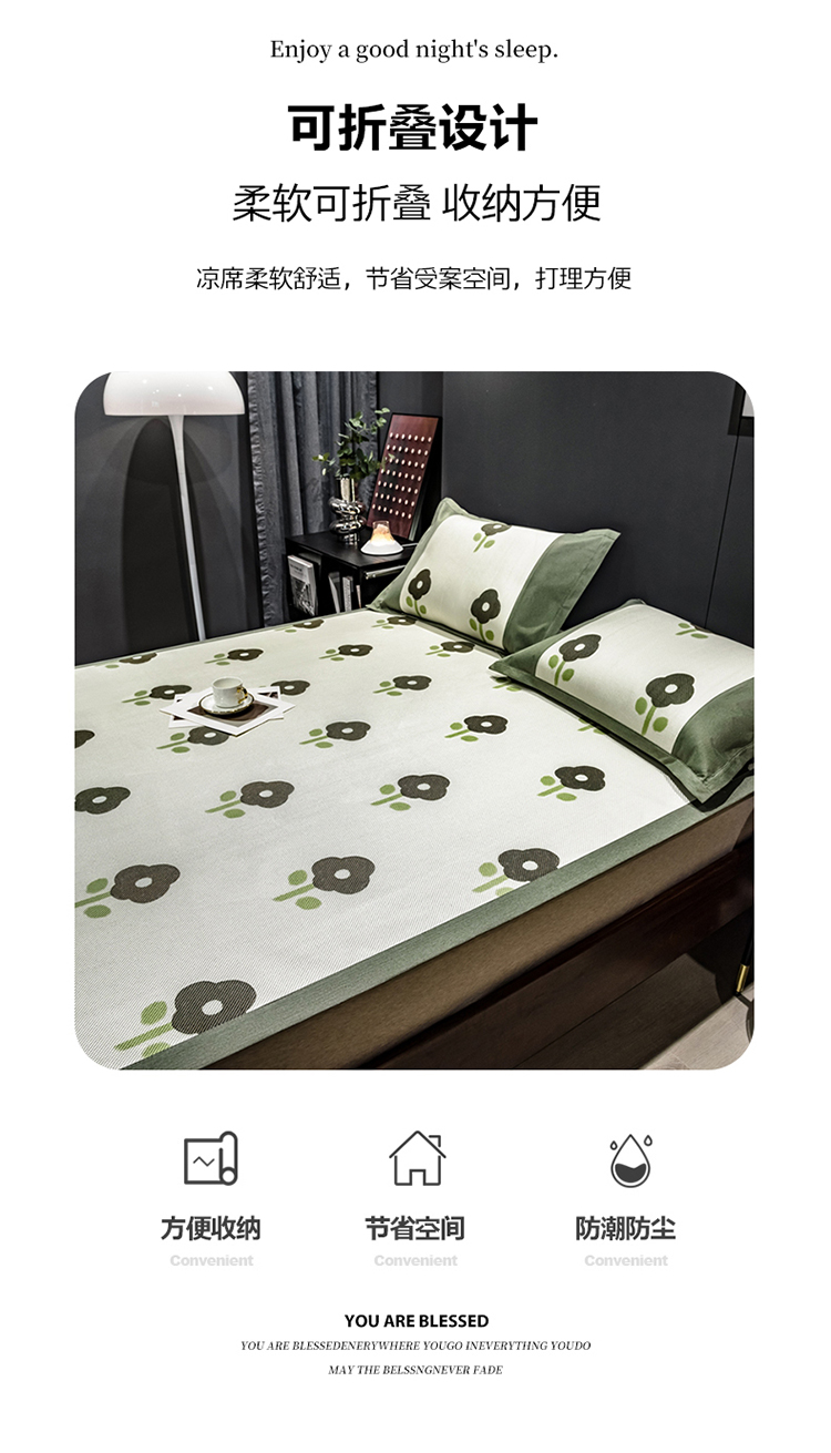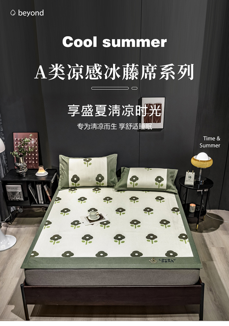 (总)全季家居 2023新款A类轻奢抗菌冰藤席,和意款-孔雀蓝,和意款-星际灰,和意款-薄荷绿,字母款-孔雀蓝,字母款-薄荷绿,字母款-星际灰