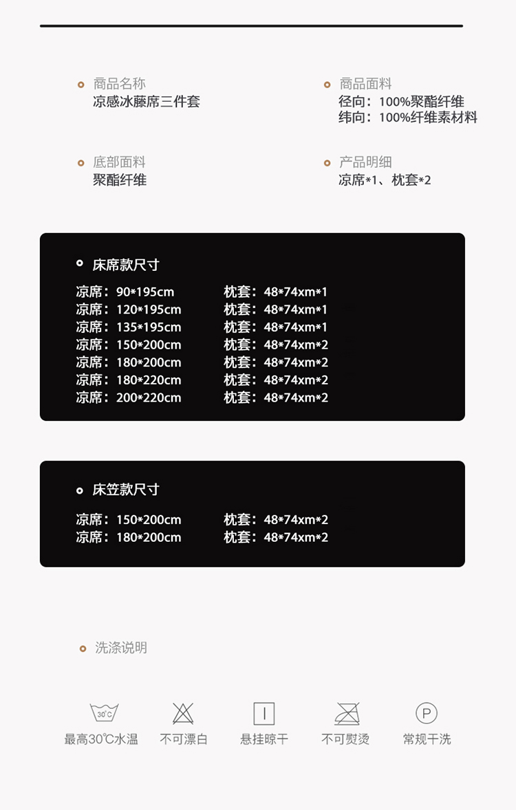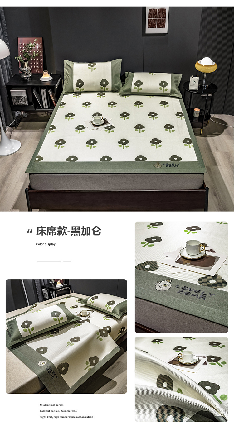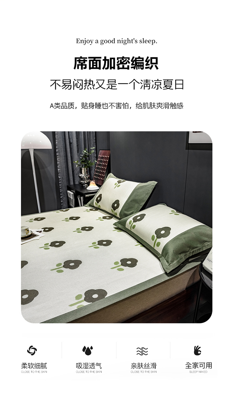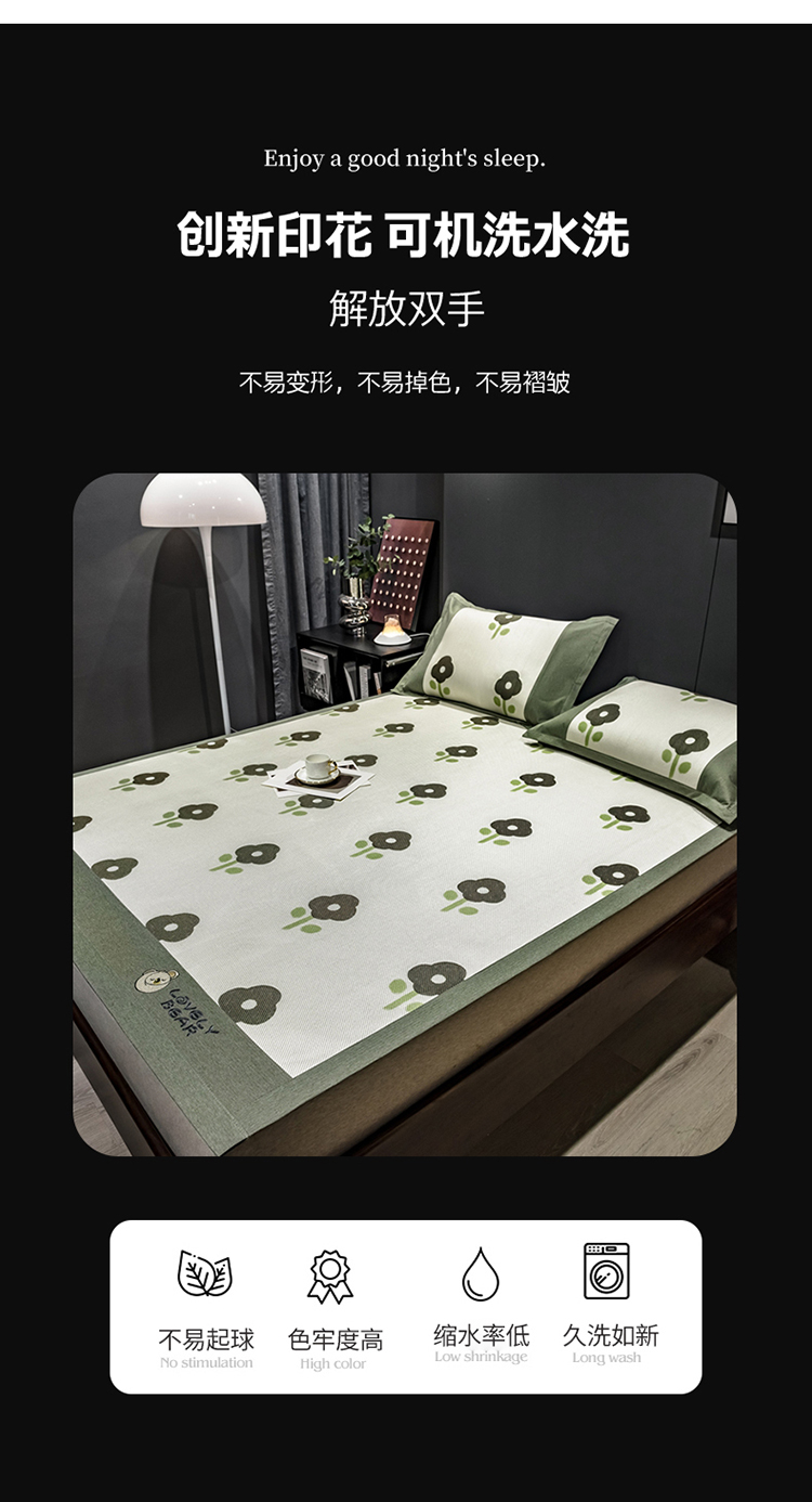 商品名称:全季家居 2023新款A类数码印花冰藤席三件套床席款 床席款-黑加仑
