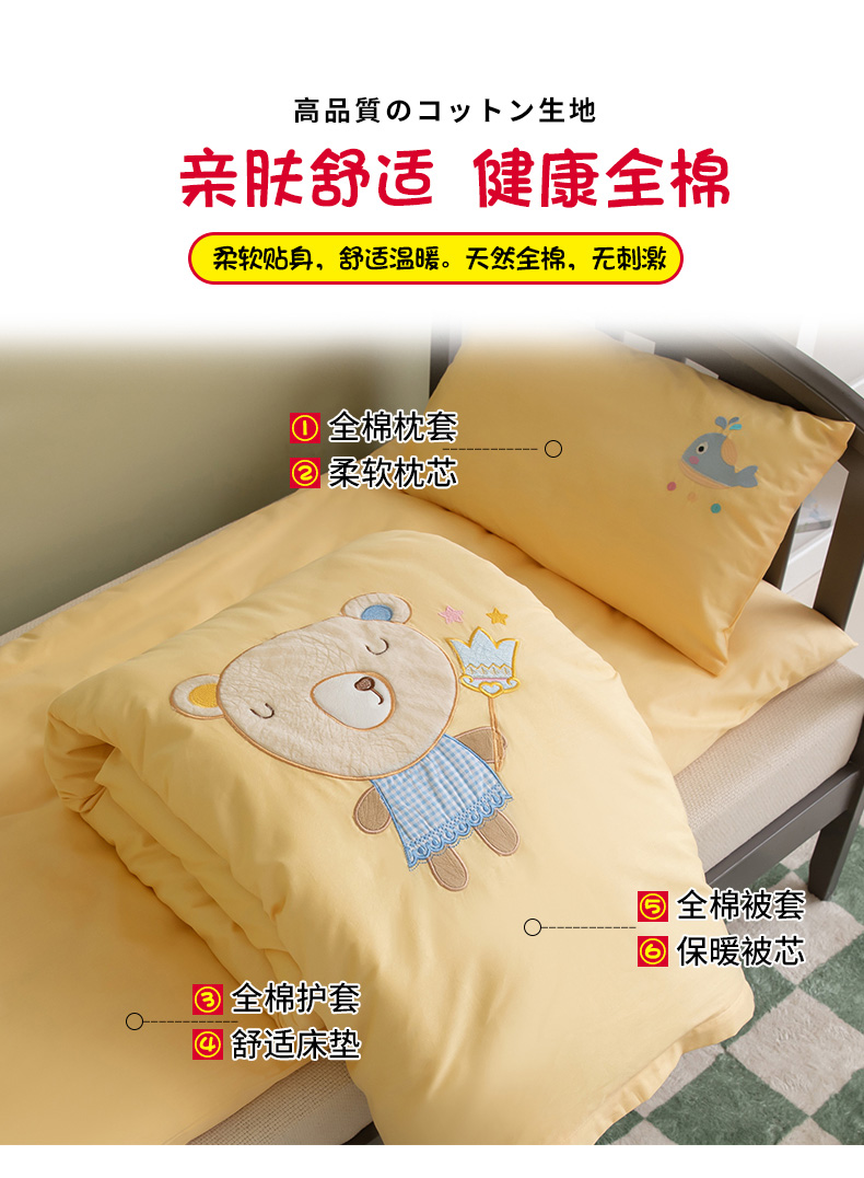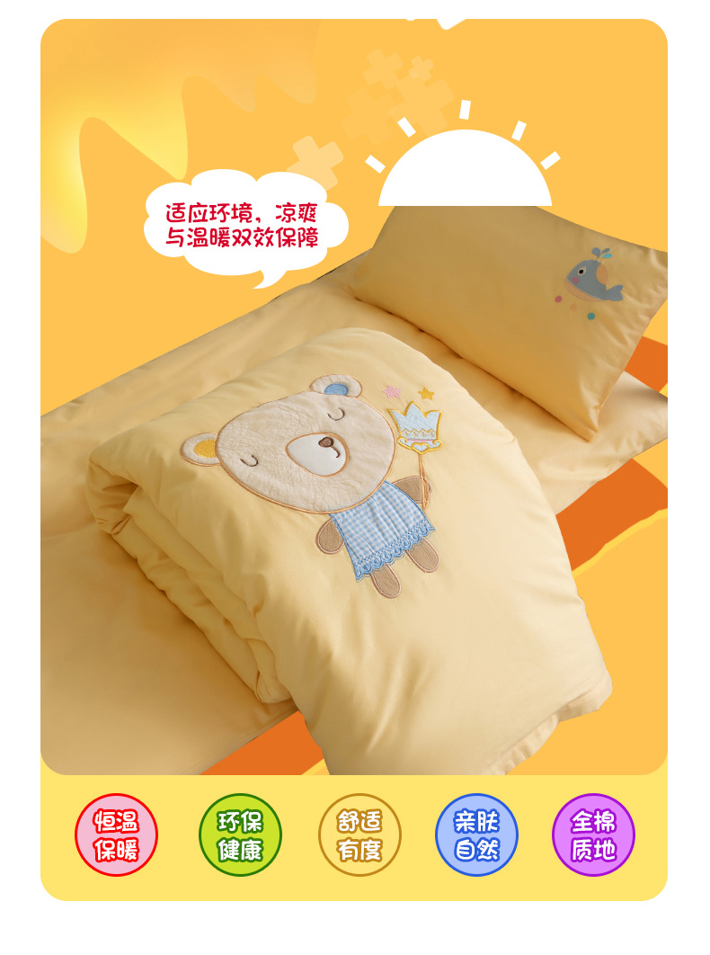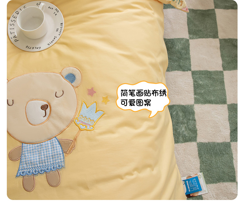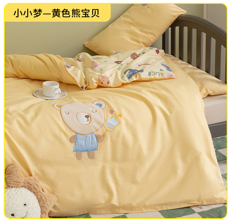 当前位置: 91家纺网 > 商品网购 > 床品套件 > 三件套 > 喜多兔 2023新款40支13372纯棉小小梦绣花幼儿园被子三件套 黄色熊宝贝