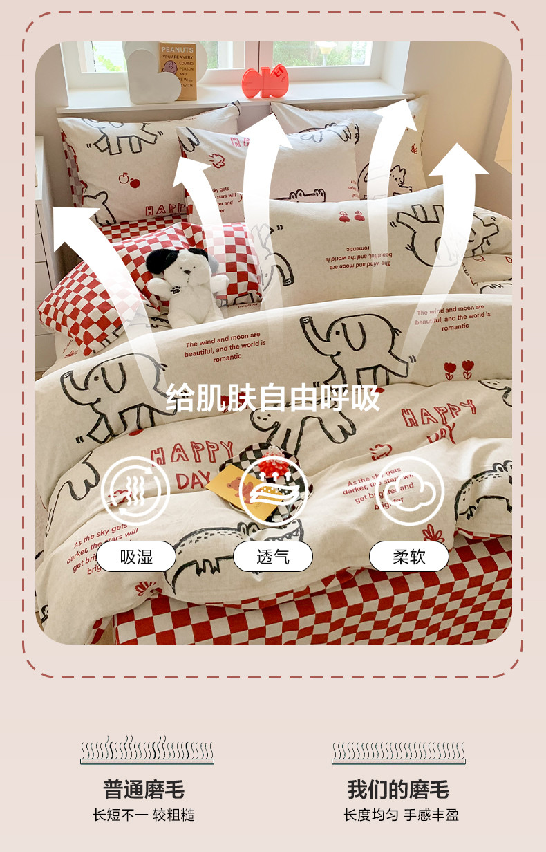 商品名称:澳萝拉 2023新款磨毛四件套-卡通系列 奶油小象