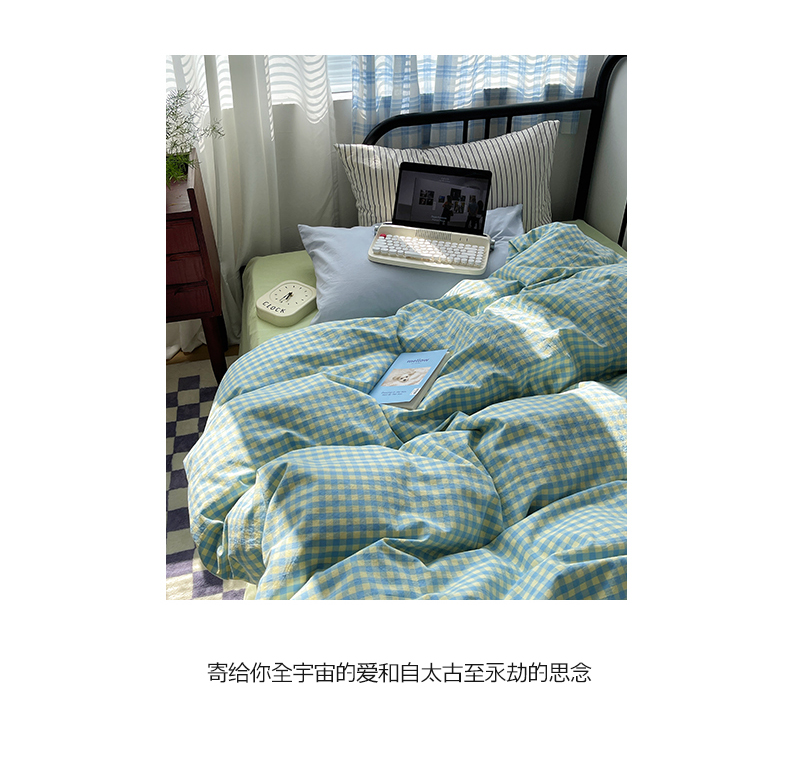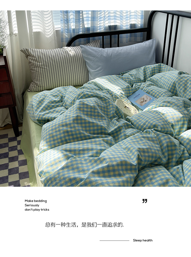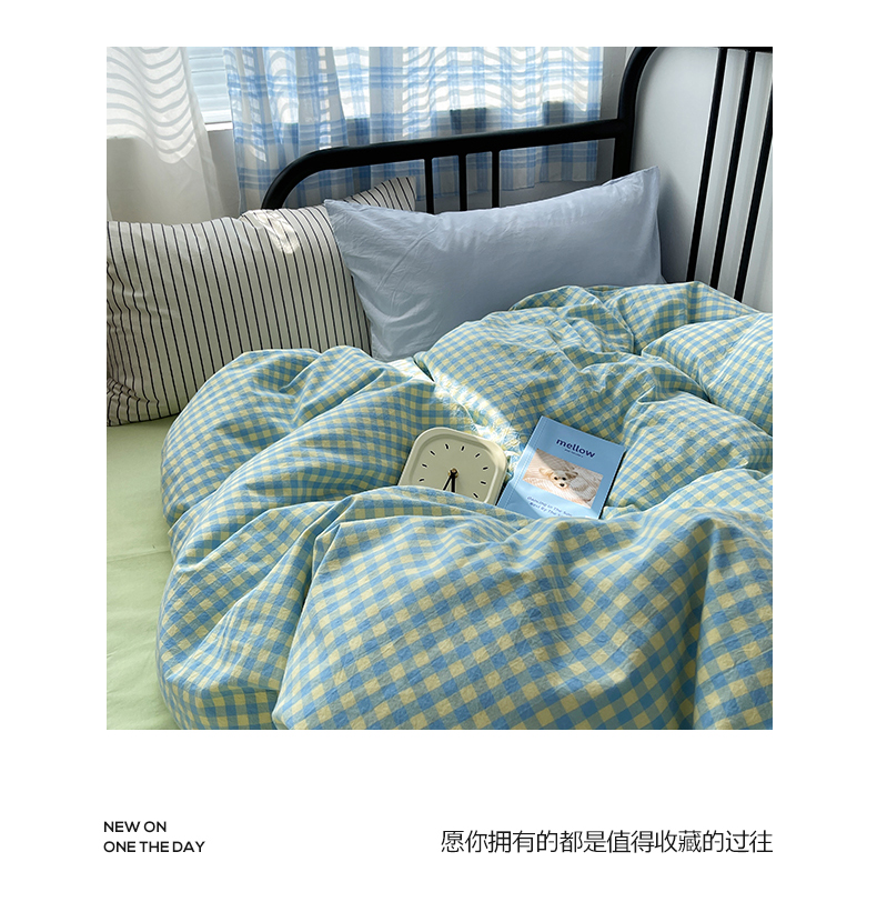 商品名称:六巷胡同 2023新款ins博主风洋气小格子篇四件套 芝士黄小格