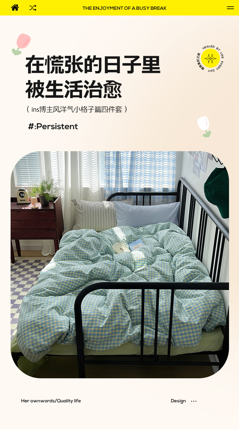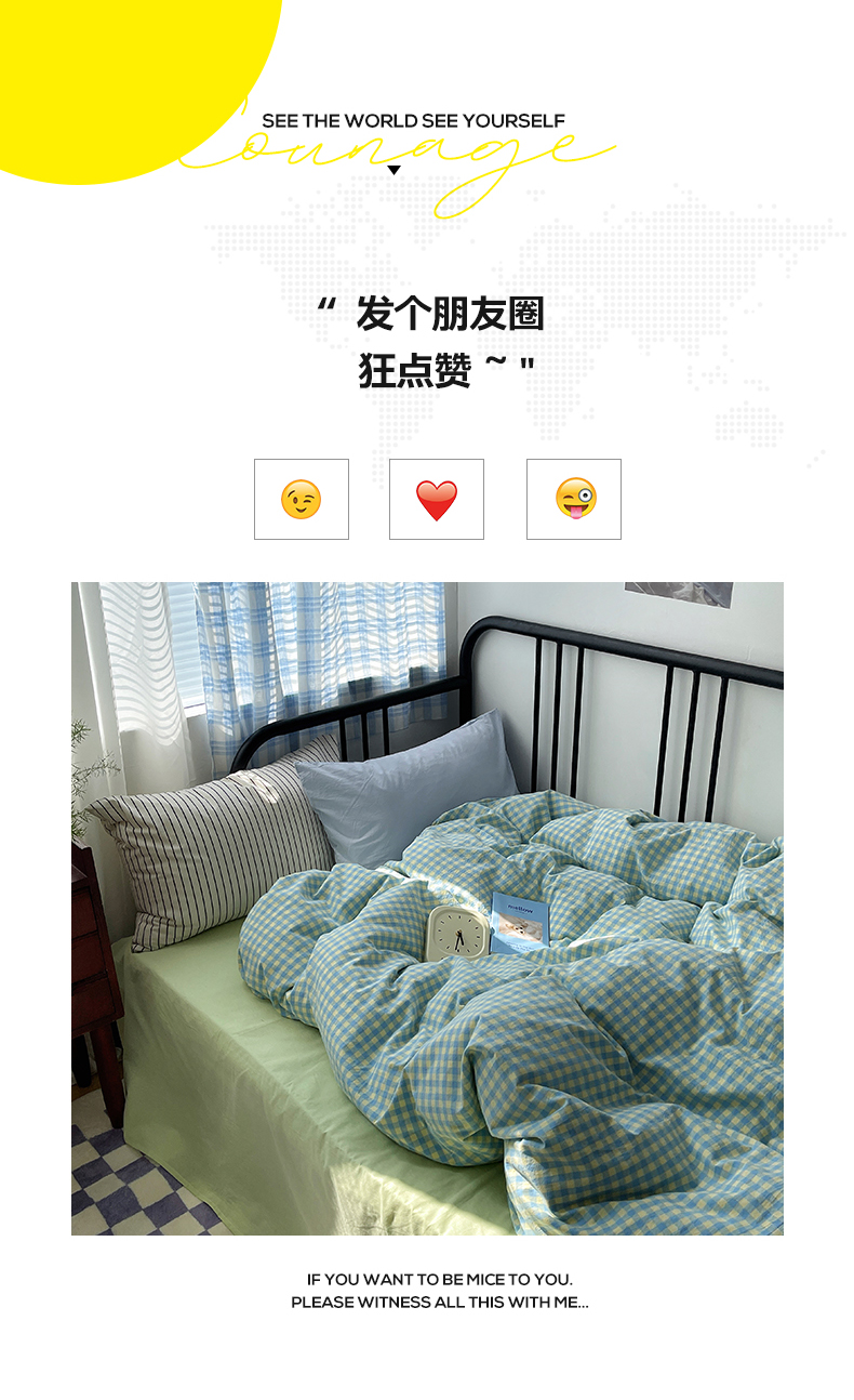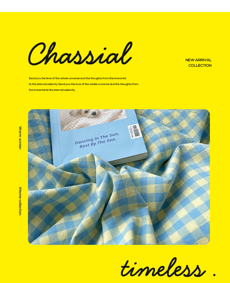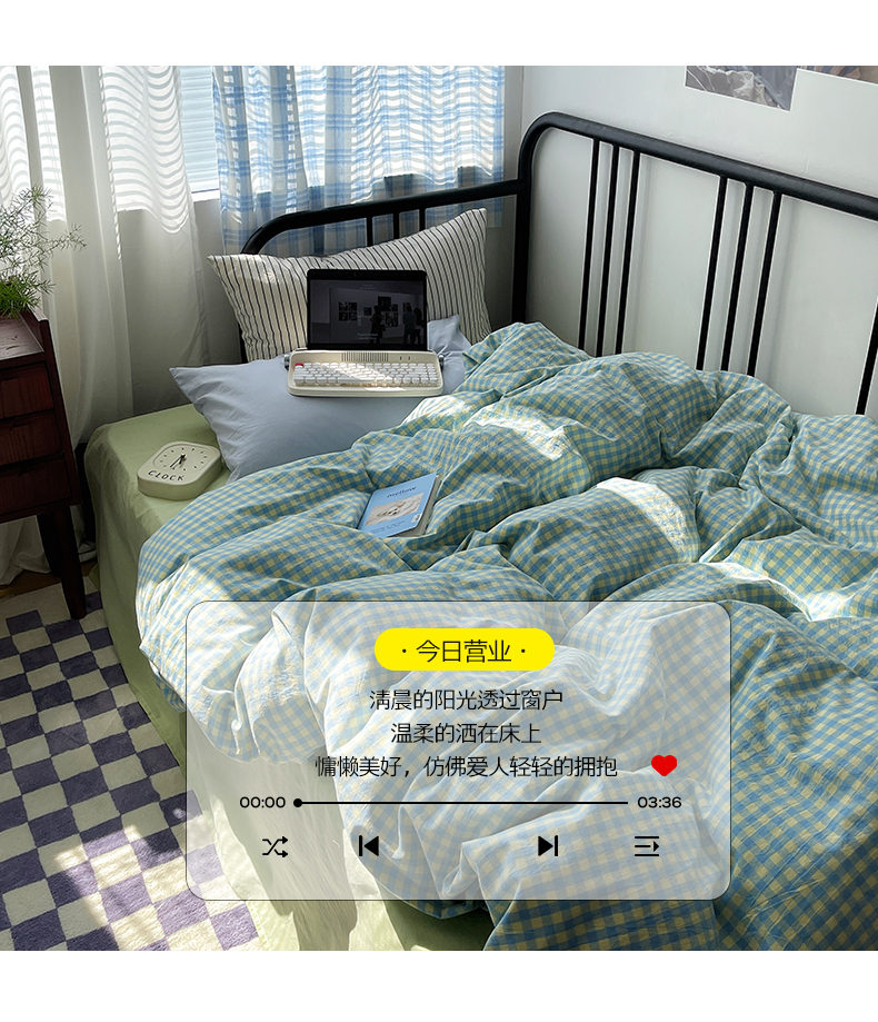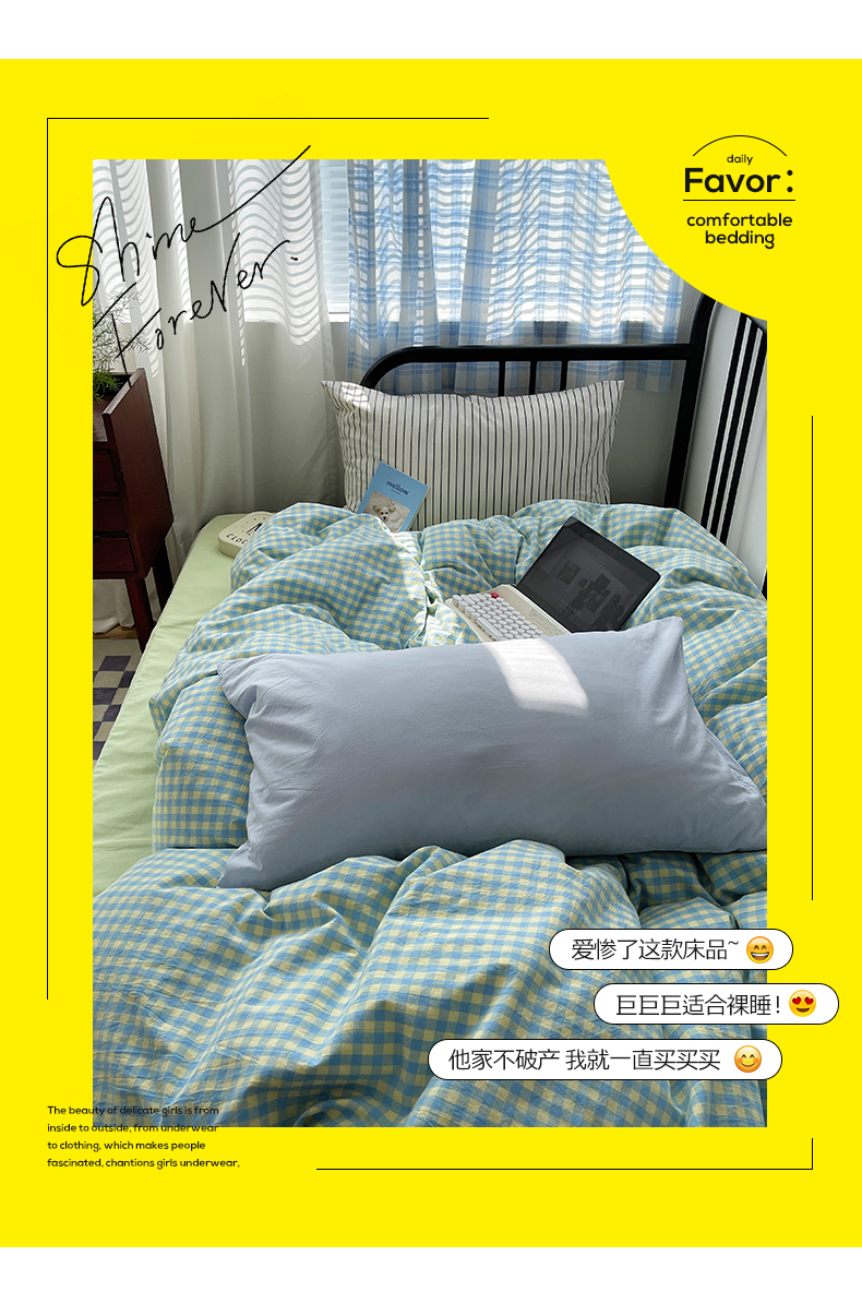 六巷胡同 2023新款ins博主风洋气小格子篇四件套 芝士黄小格