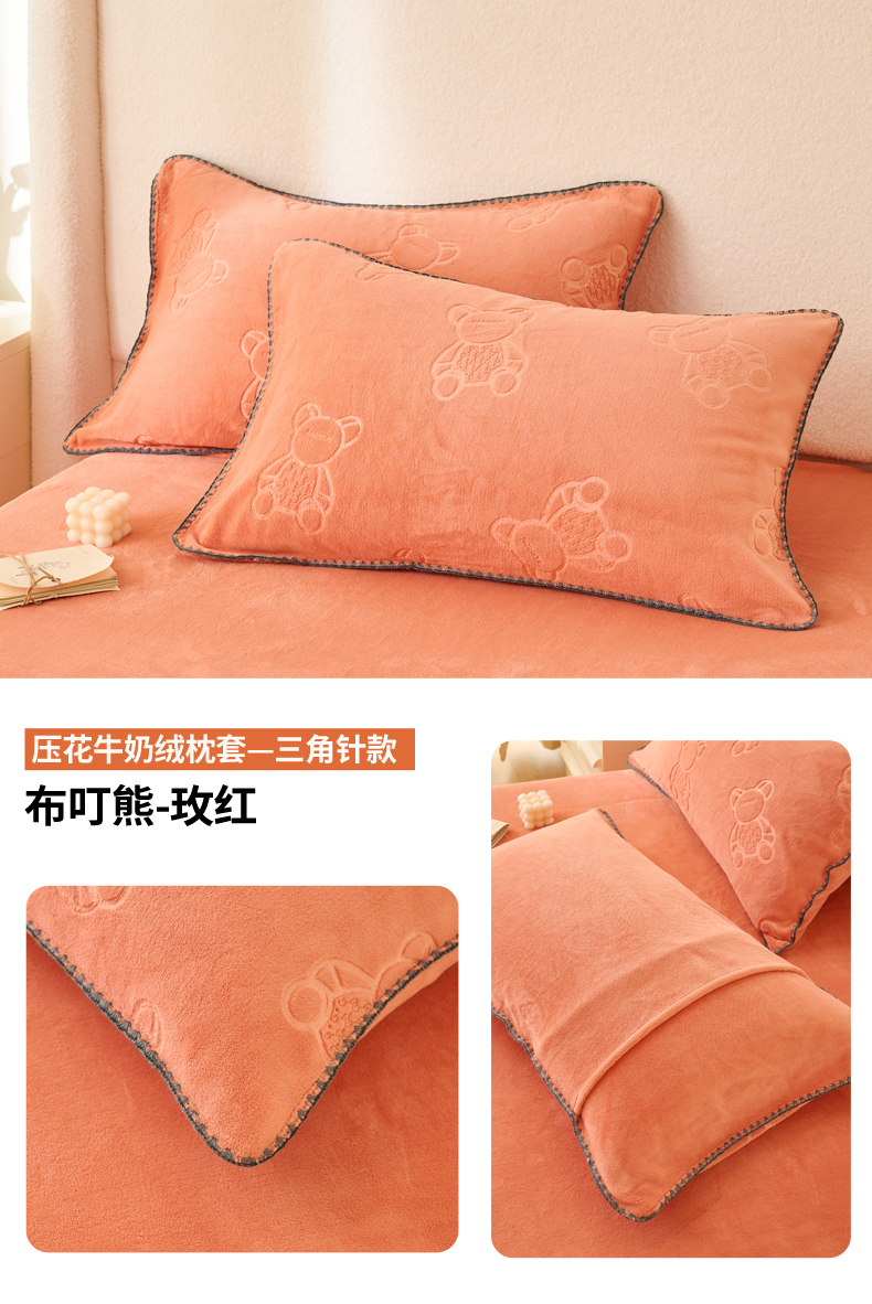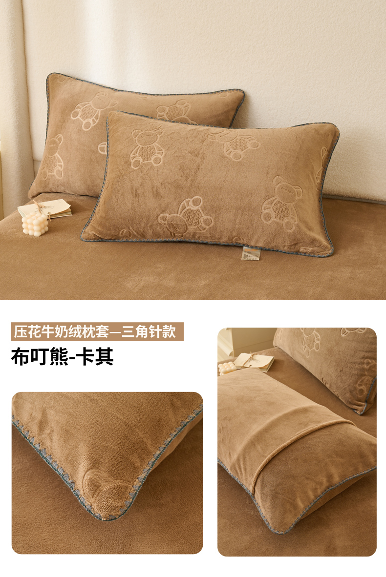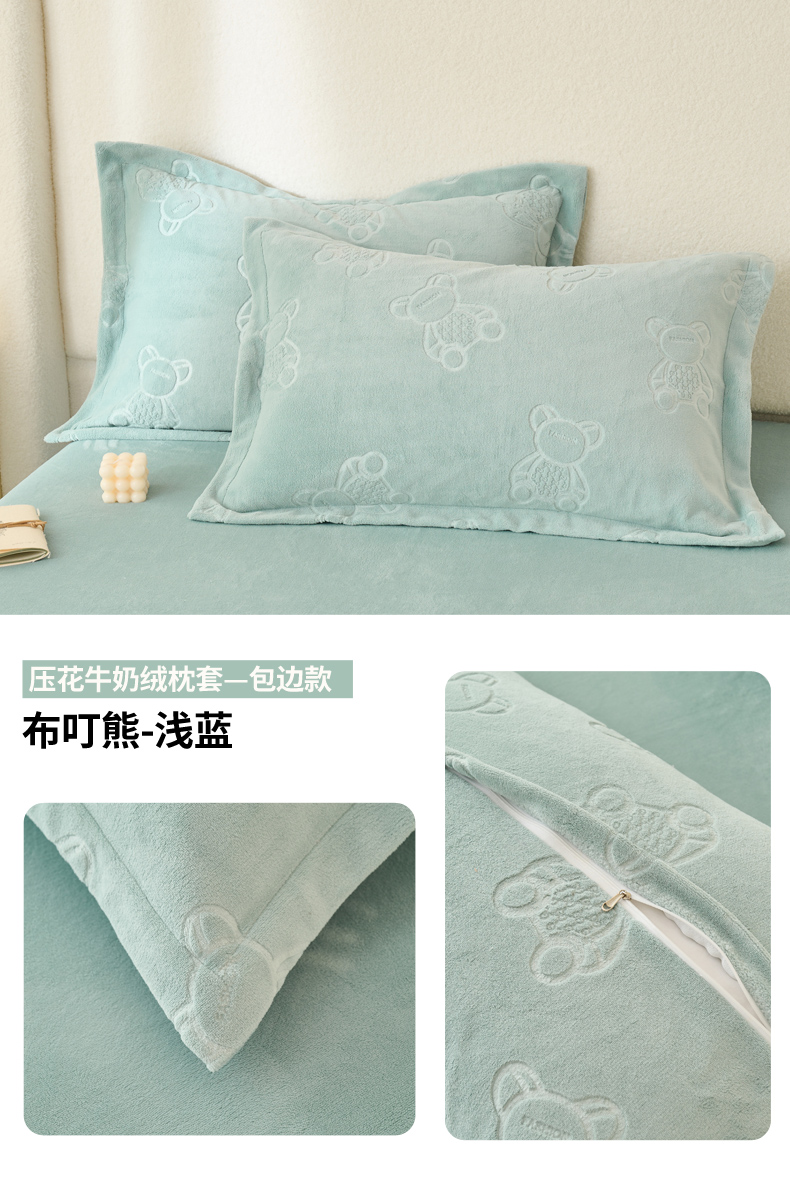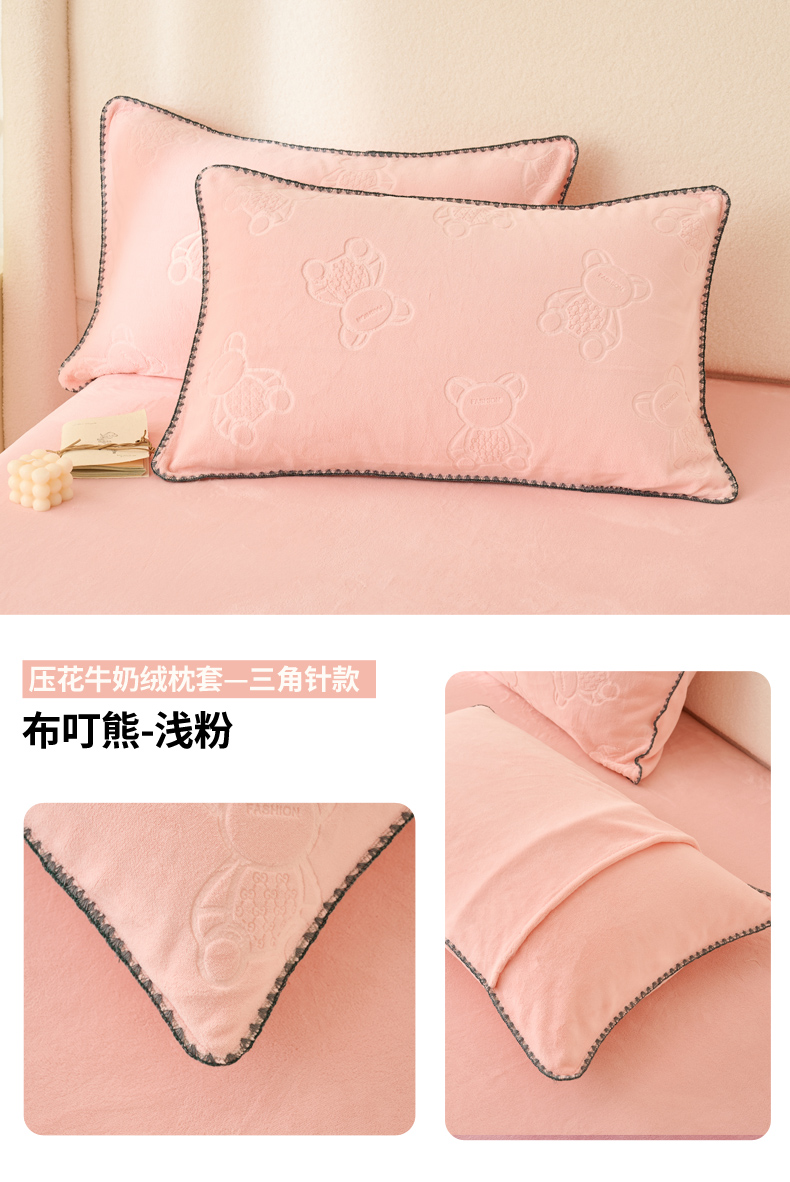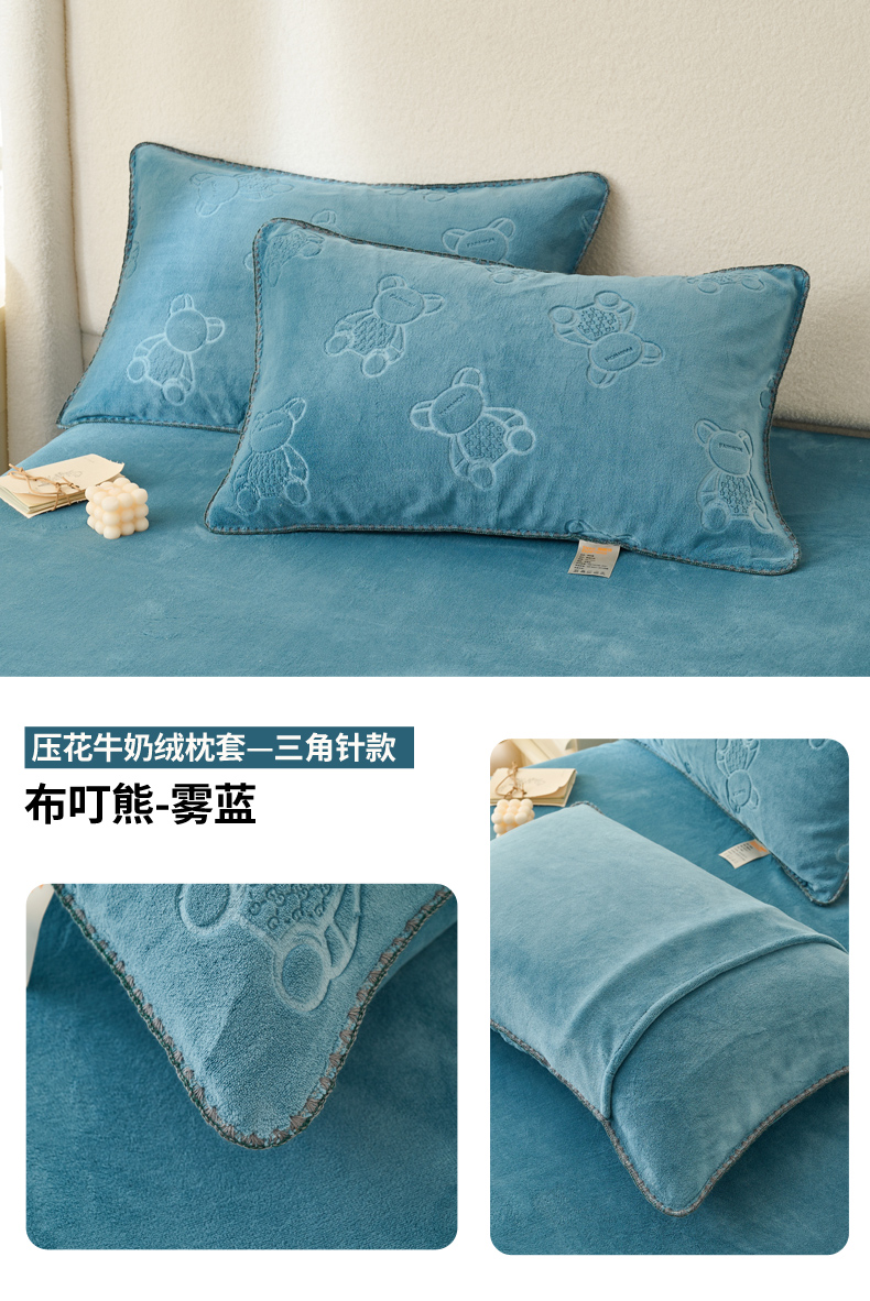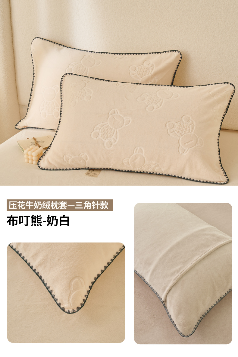 (总)21度C 2023新款布叮熊云朵压花绒牛奶绒包边三角针枕套