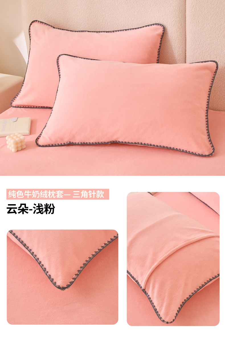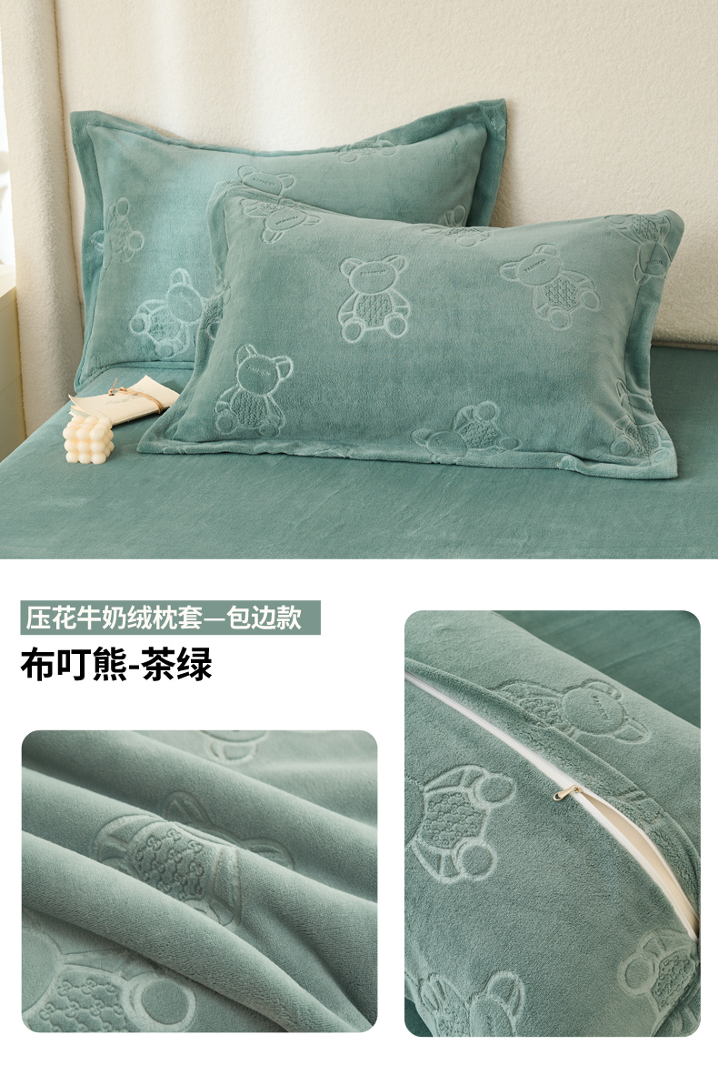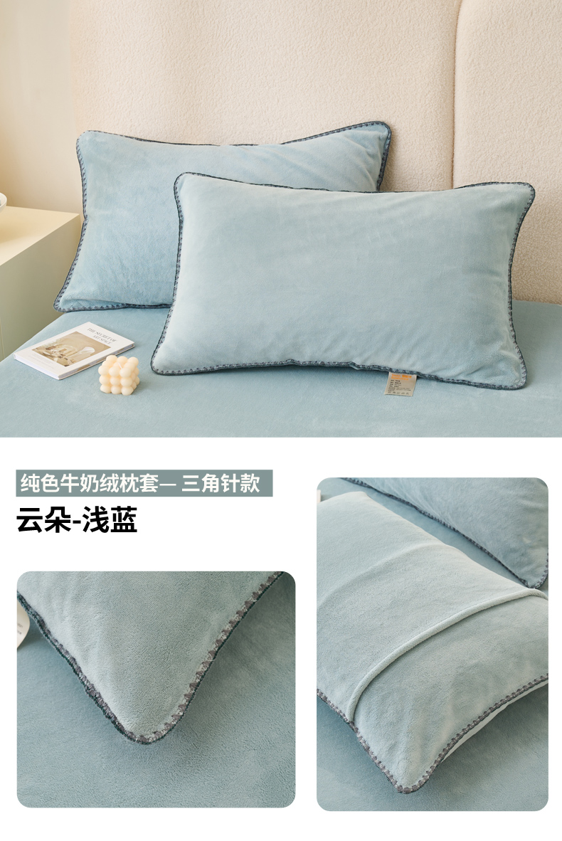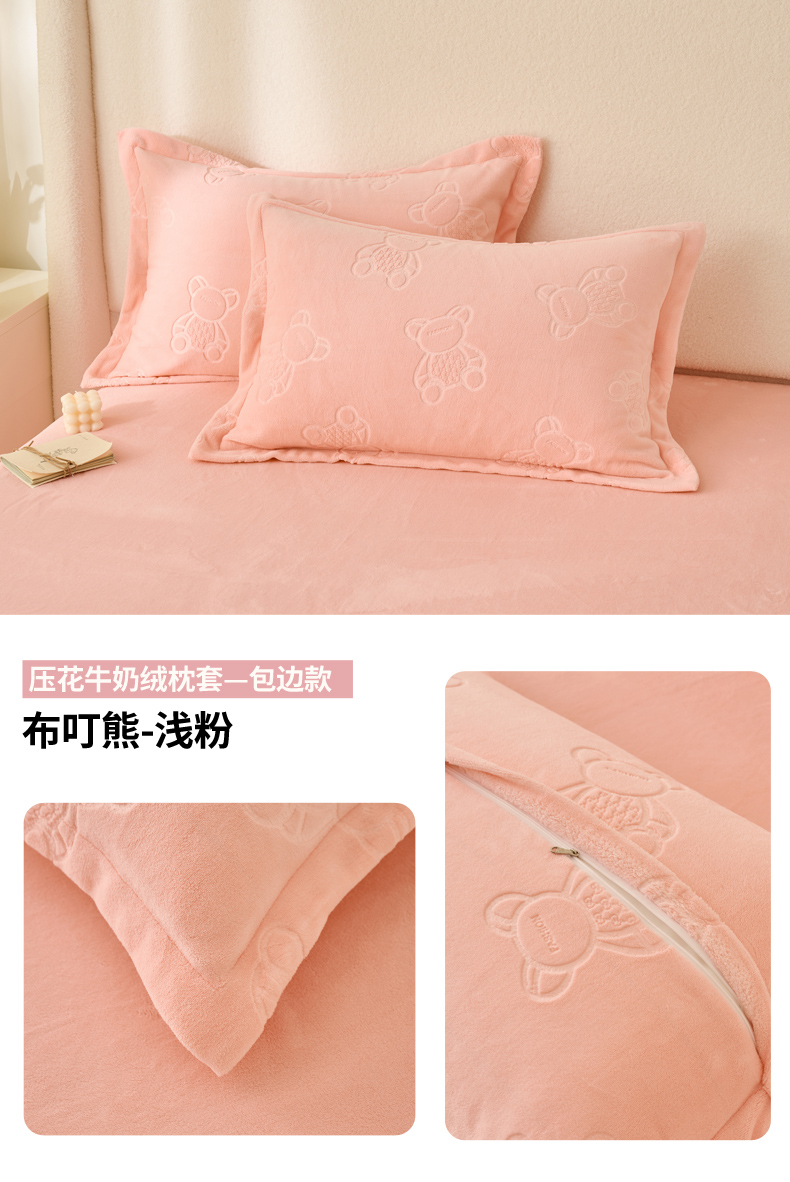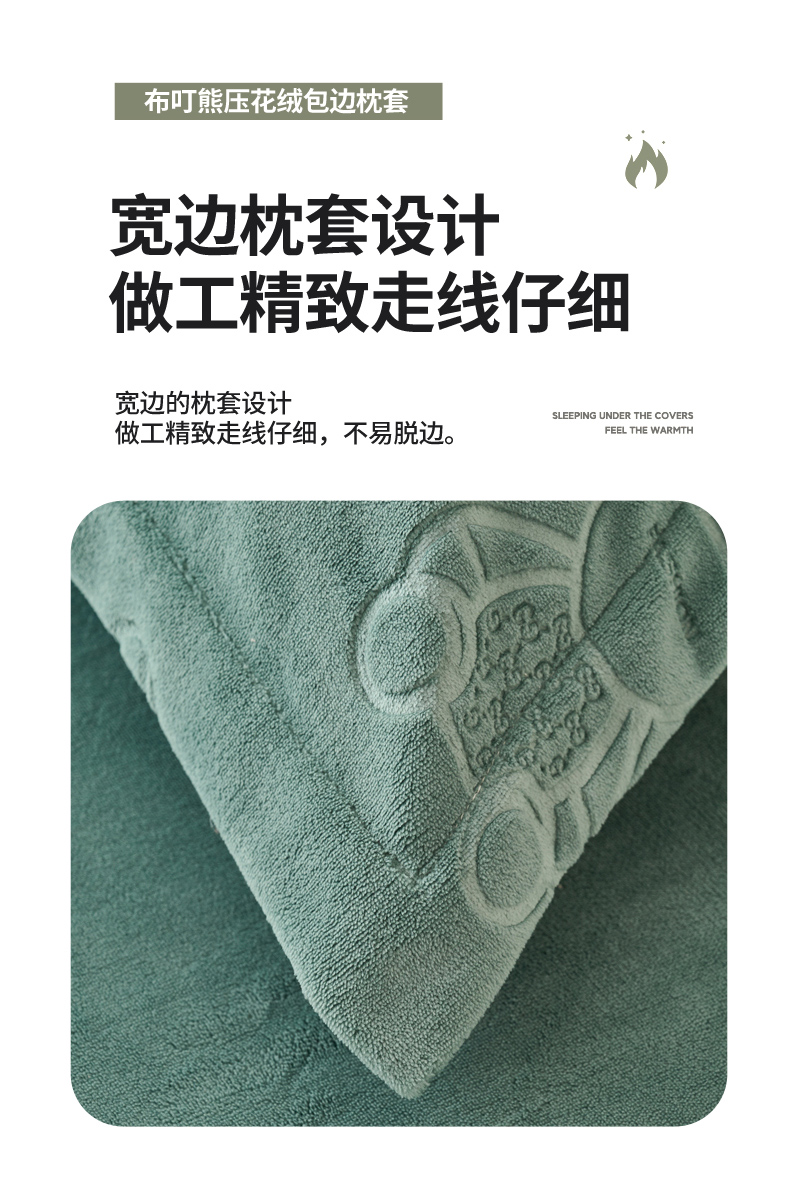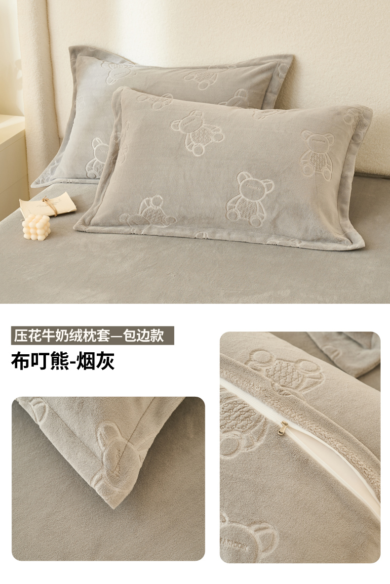 (总)21度C 2023新款布叮熊云朵压花绒牛奶绒包边三角针枕套