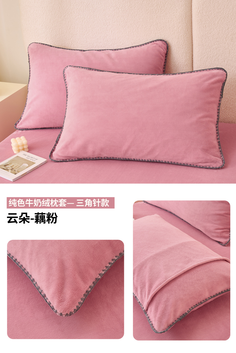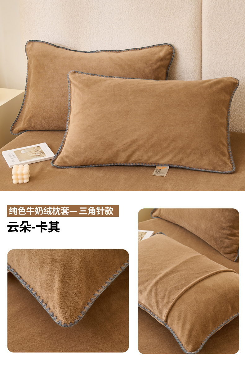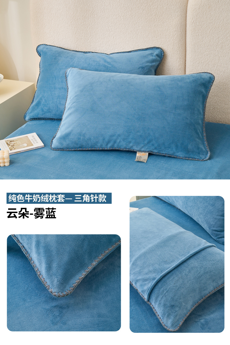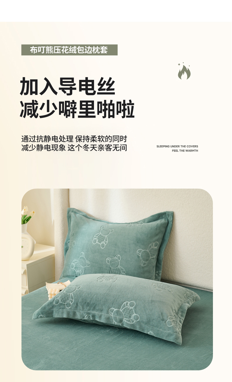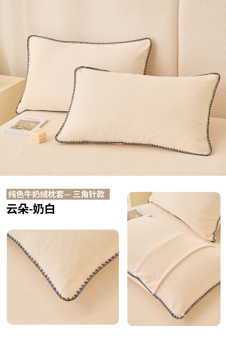 (总)21度C 2023新款布叮熊云朵压花绒牛奶绒包边三角针枕套