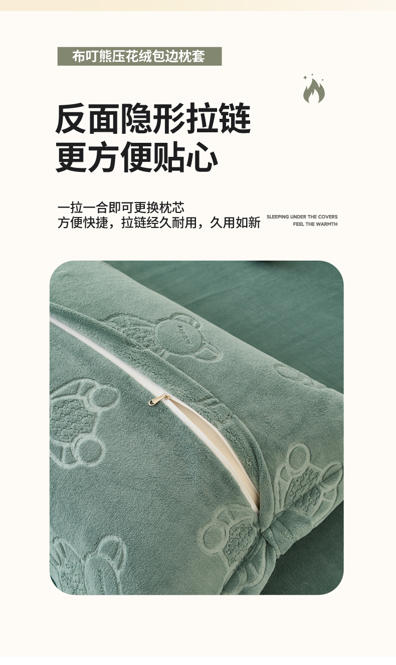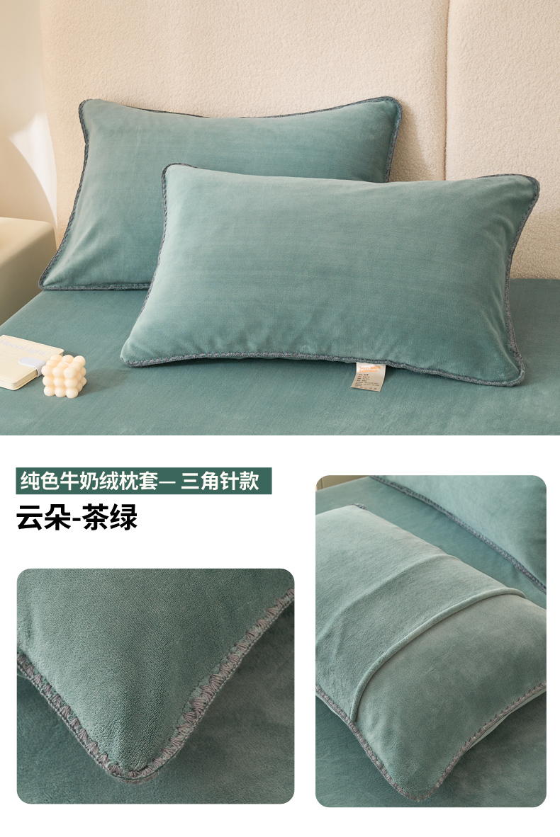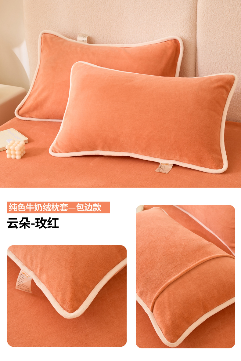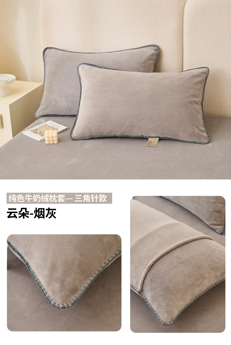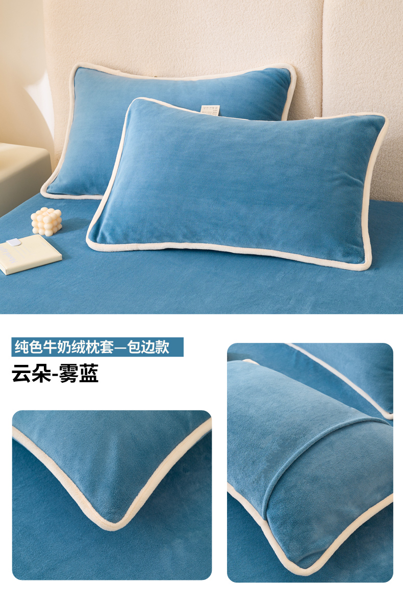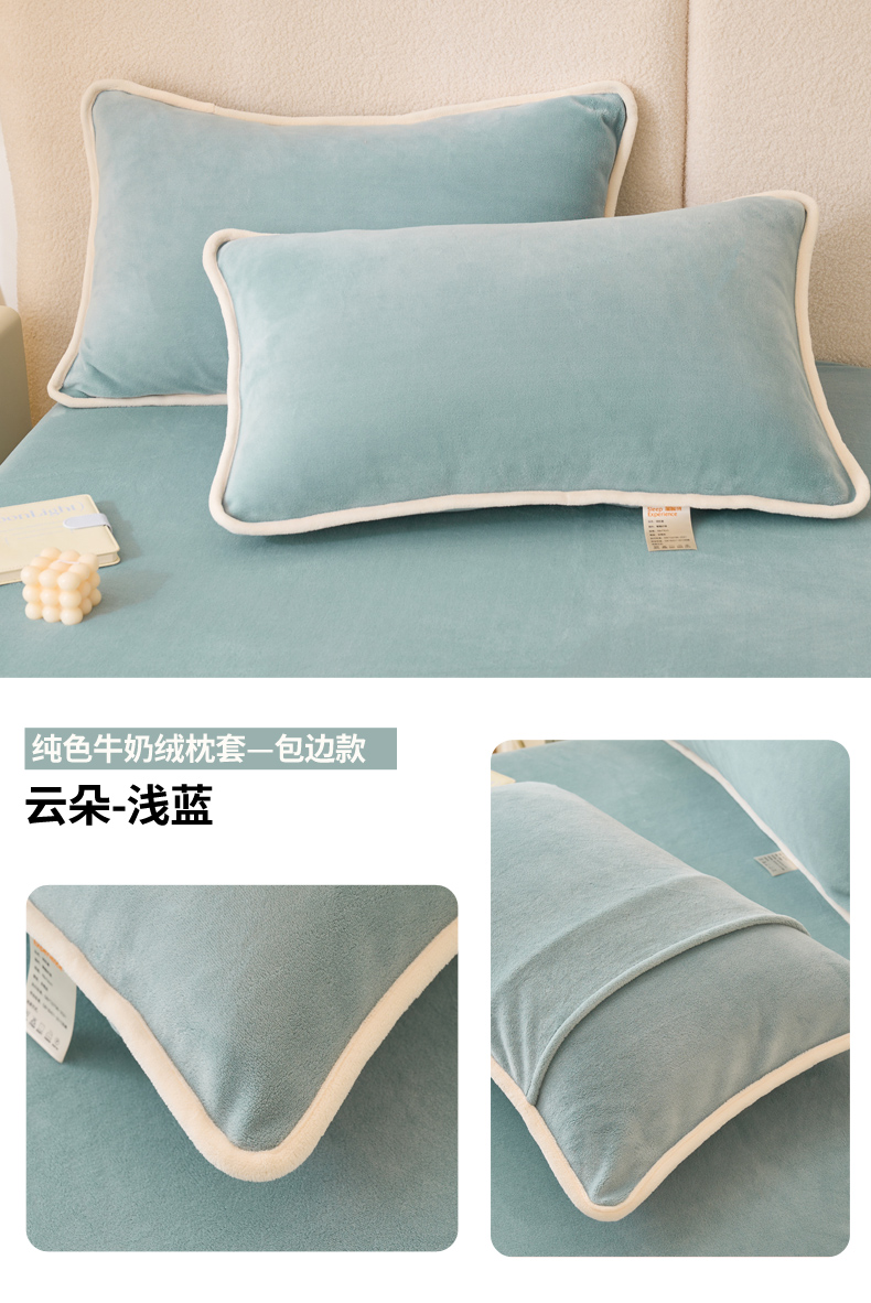 (总)21度C 2023新款布叮熊云朵压花绒牛奶绒包边三角针枕套