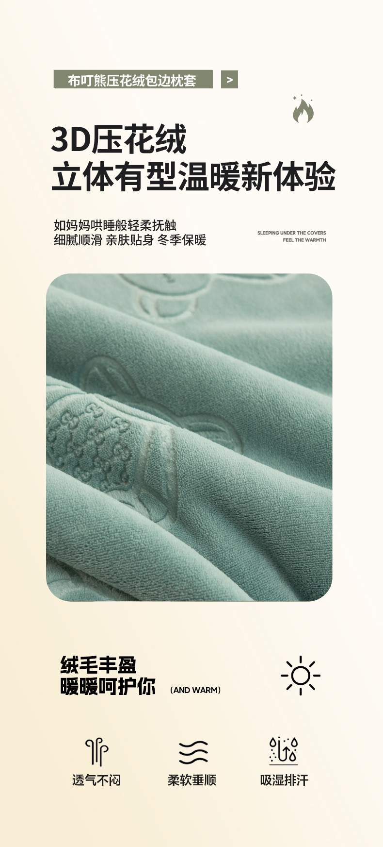 商品名称:(总)21度C 2023新款布叮熊云朵压花绒牛奶绒包边三角针枕套