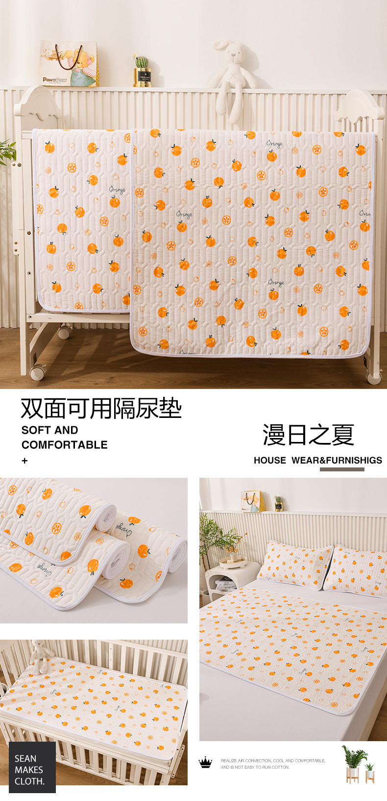 • 91家纺网 家纺一手货源 找家纺 恋绒 2023新款全棉护理垫防水隔尿垫姨妈垫床盖 漫日之夏