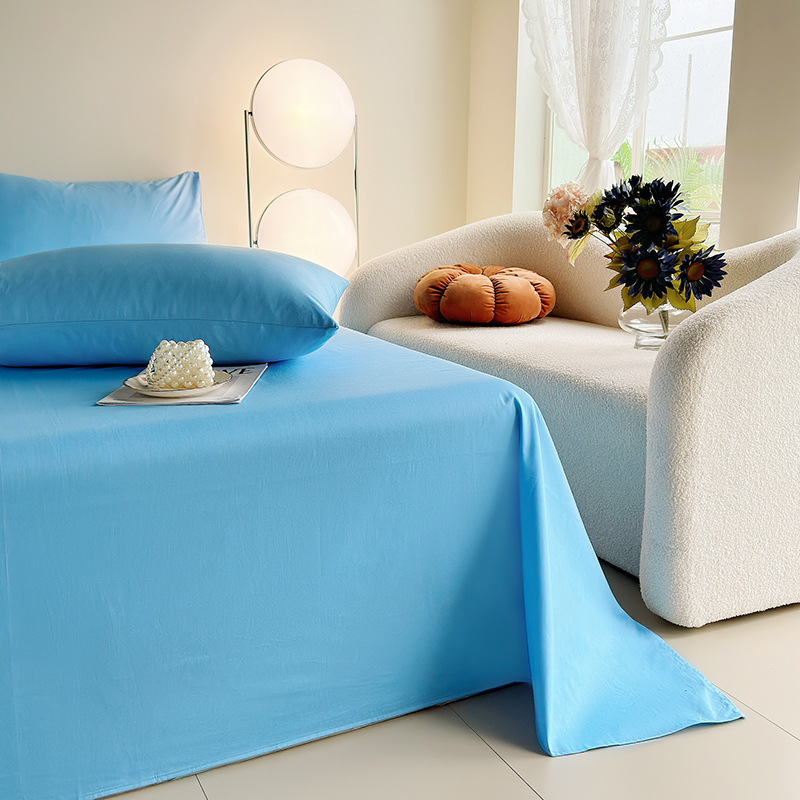 寝柔家纺 2024新款40S全棉斜纹13372纯棉纯色套件单品-单床单 (风格一) 湖蓝