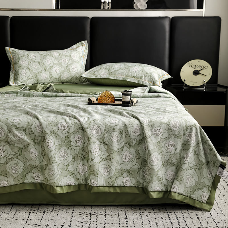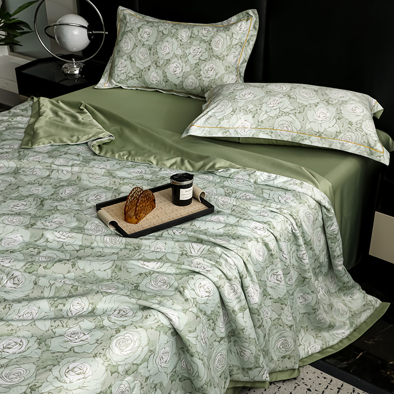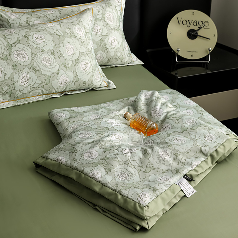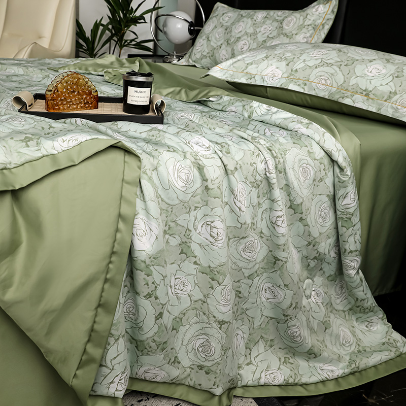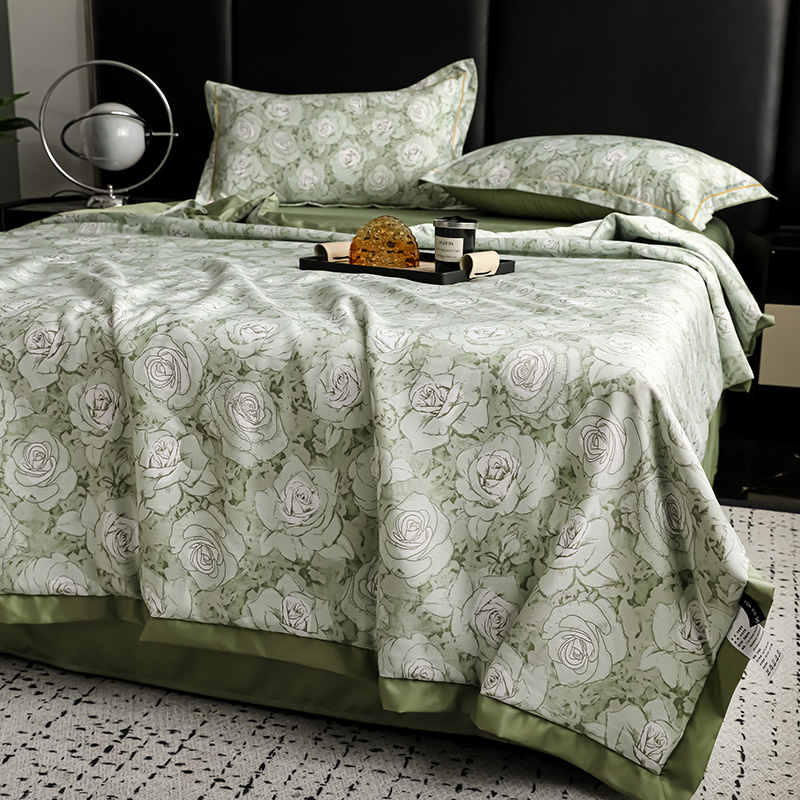 亚龙工厂店 2024新款水洗真丝夏被四件套 玫瑰绿