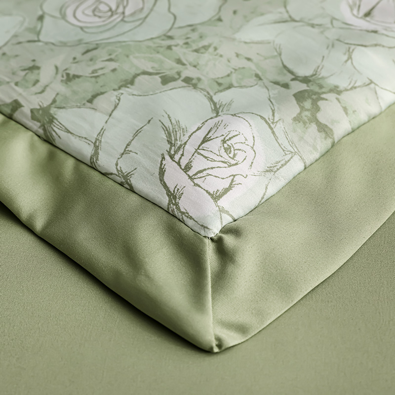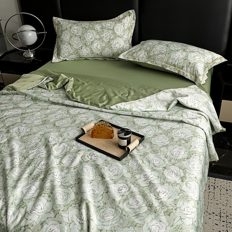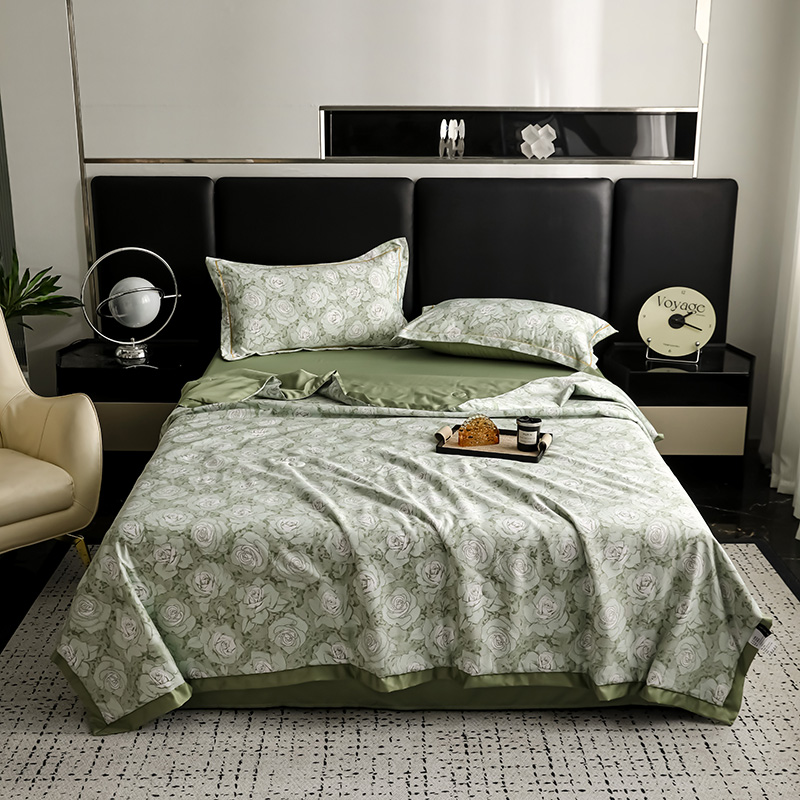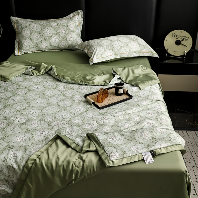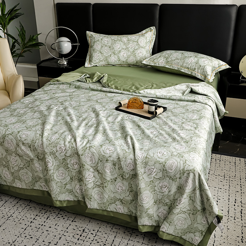 亚龙工厂店 2024新款水洗真丝夏被四件套 玫瑰绿