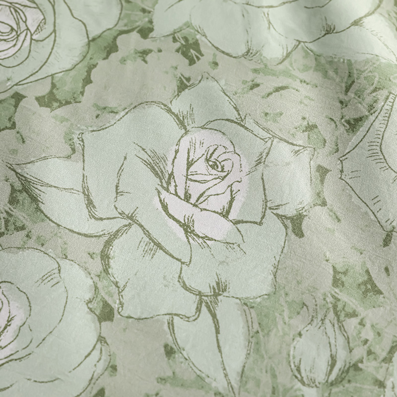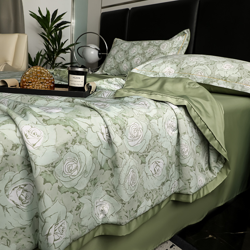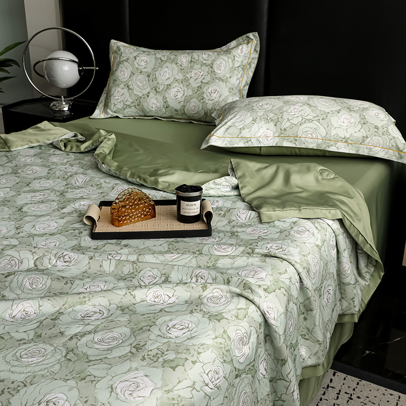 商品名称:亚龙工厂店 2024新款水洗真丝夏被四件套 玫瑰绿
