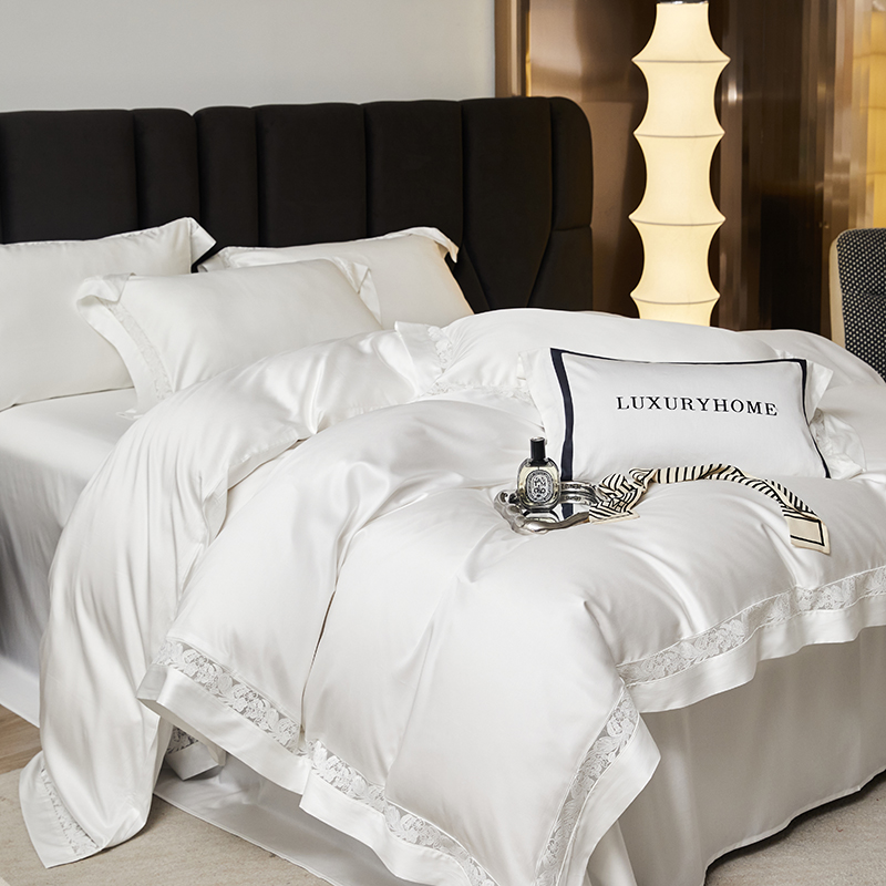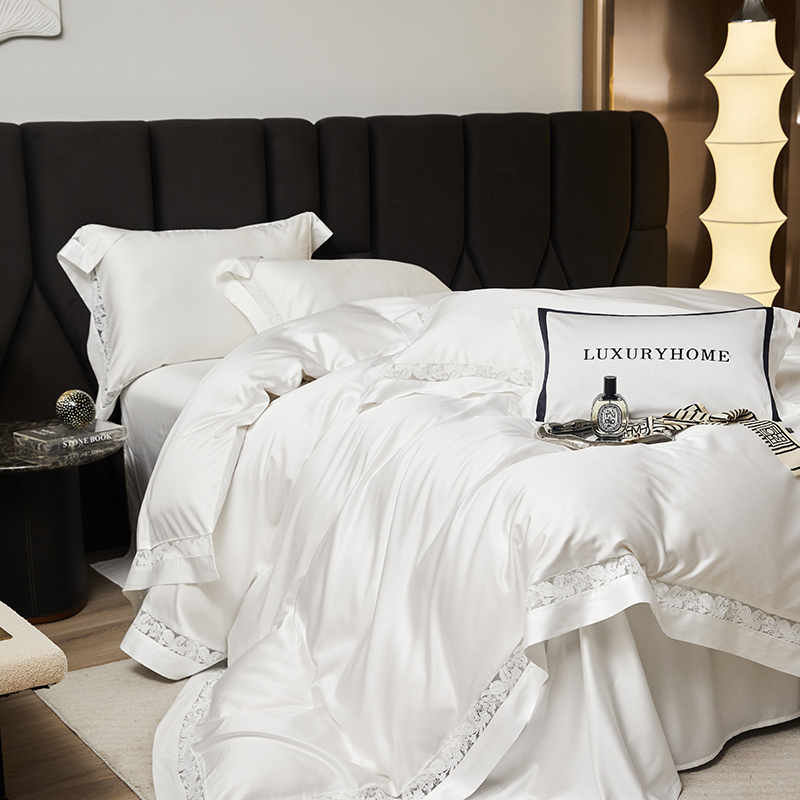 商品名称:榻尚家居 2024新款天丝棉法式镂空工艺款四件套--云绡(会员减20) 珍珠白