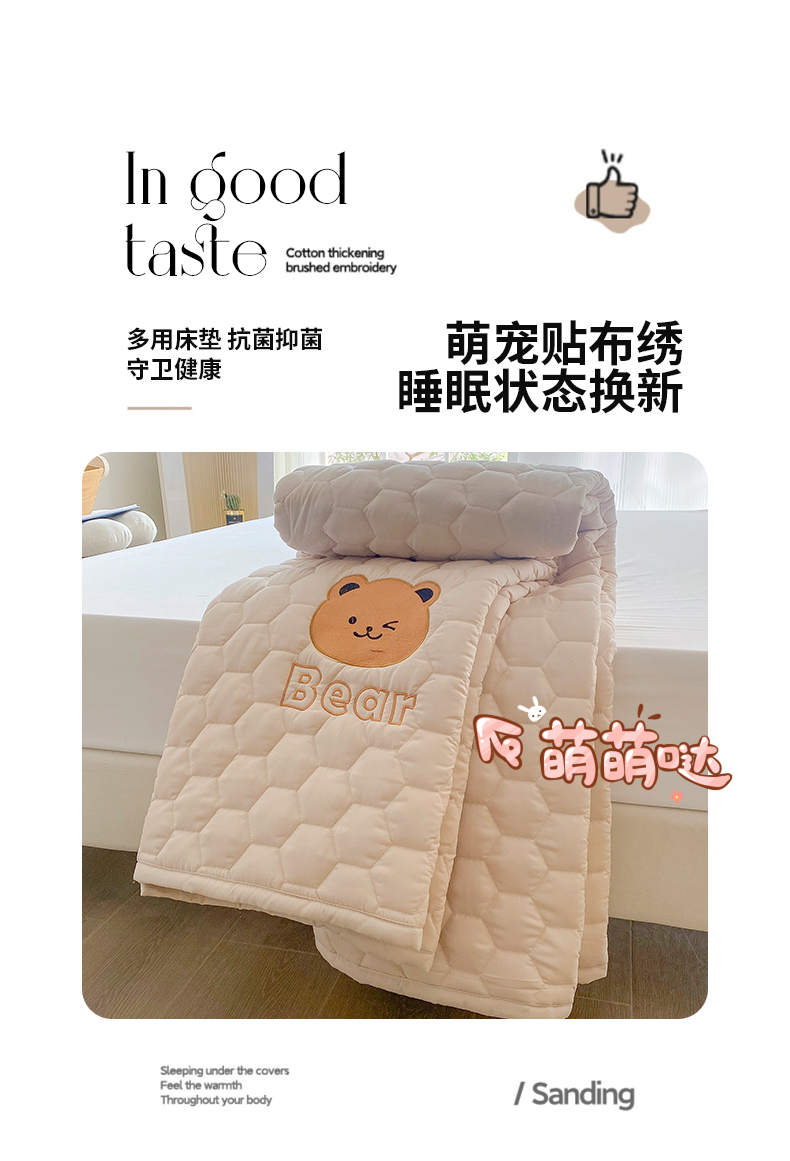 当前位置: 91家纺网 > 商品网购 > 床垫/床褥 > 普通床垫 > 恋绒家纺 A类刺绣款床褥学生软床垫子床护垫软垫(图1) 可爱熊-浅驼