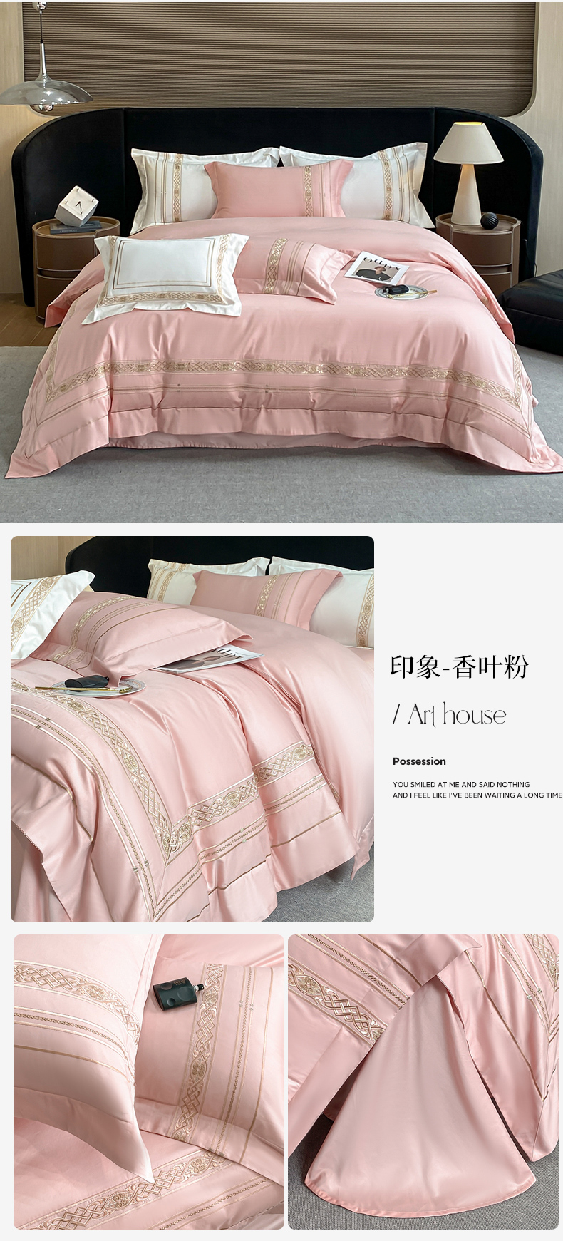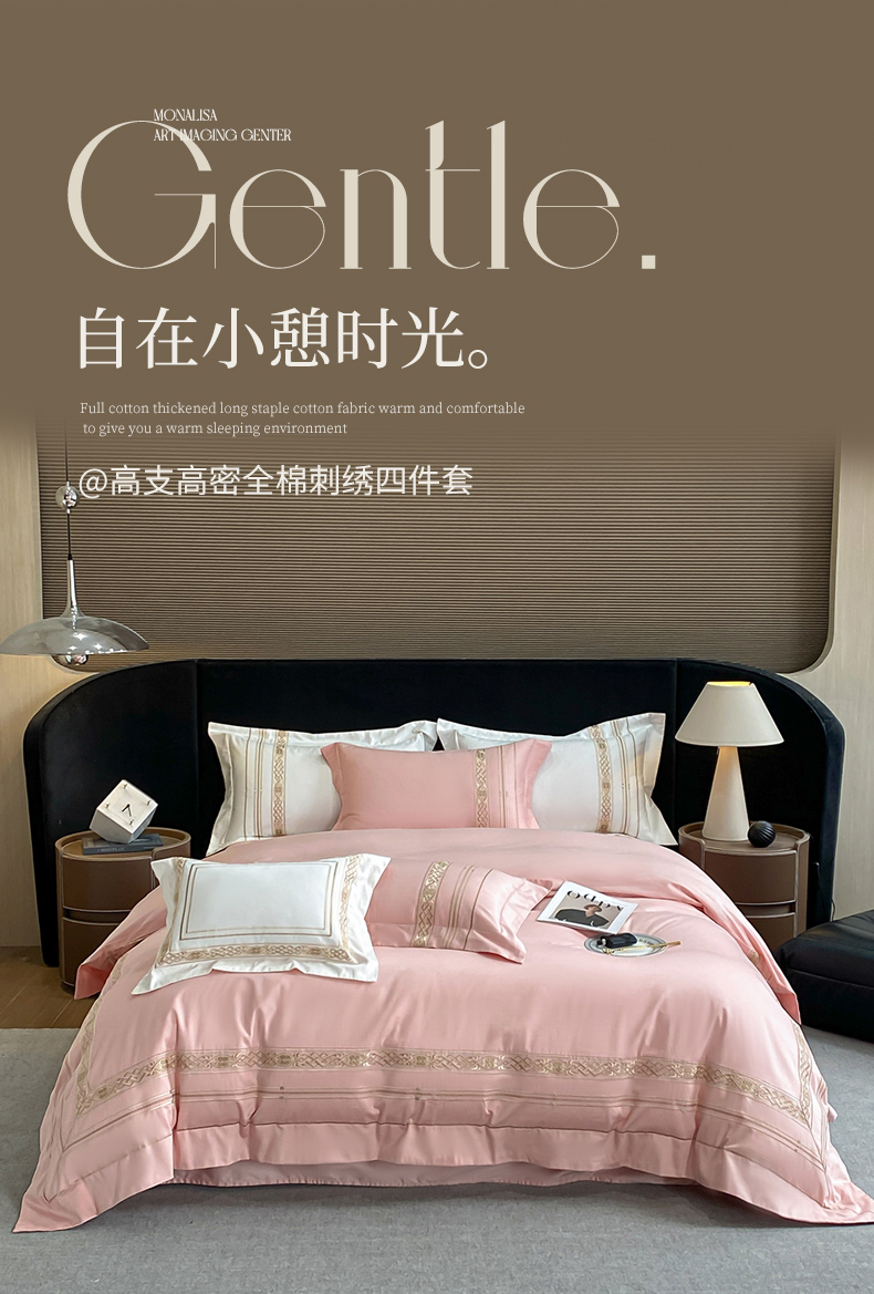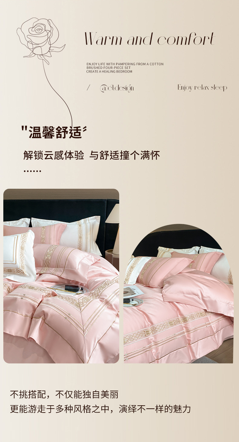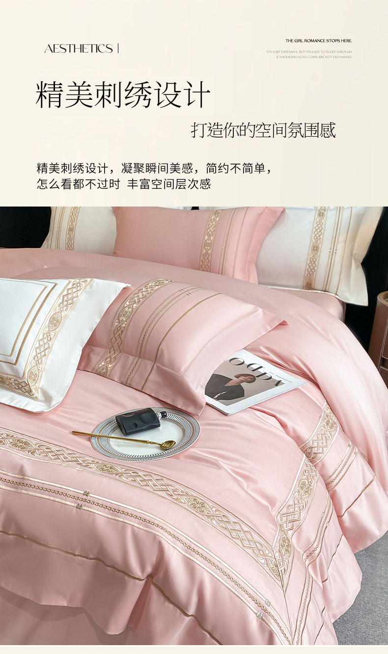 (总)星蕴家纺 2024新款A类新疆全棉刺绣四件套,高级灰,奶昔白,千禧粉,浅香槟