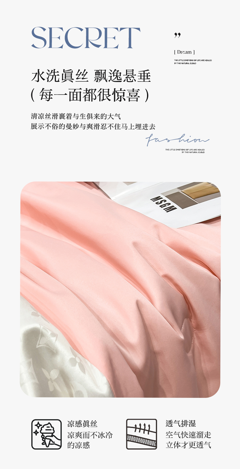 (总)梦之岛 2022新款挚爱水洗真丝四件套,挚爱-豆沙,挚爱-孔蓝,挚爱-亮黄,挚爱-玫红,挚爱-奶黄,挚爱-暖桔,挚爱-浅粉,挚爱-天蓝