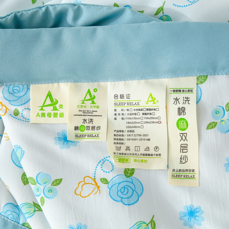 商品名称:爱宝被业 2025新款水洗棉麻双层纱夏凉被兰花朵朵