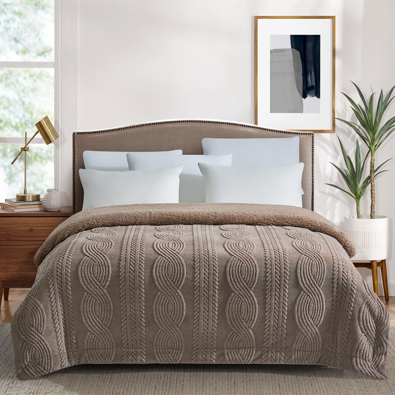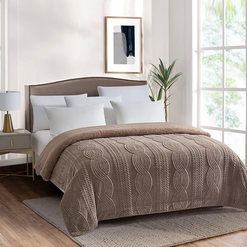 商品名称:巴木赫 2024新款8字配色双层羊羔绒毛毯 深棕