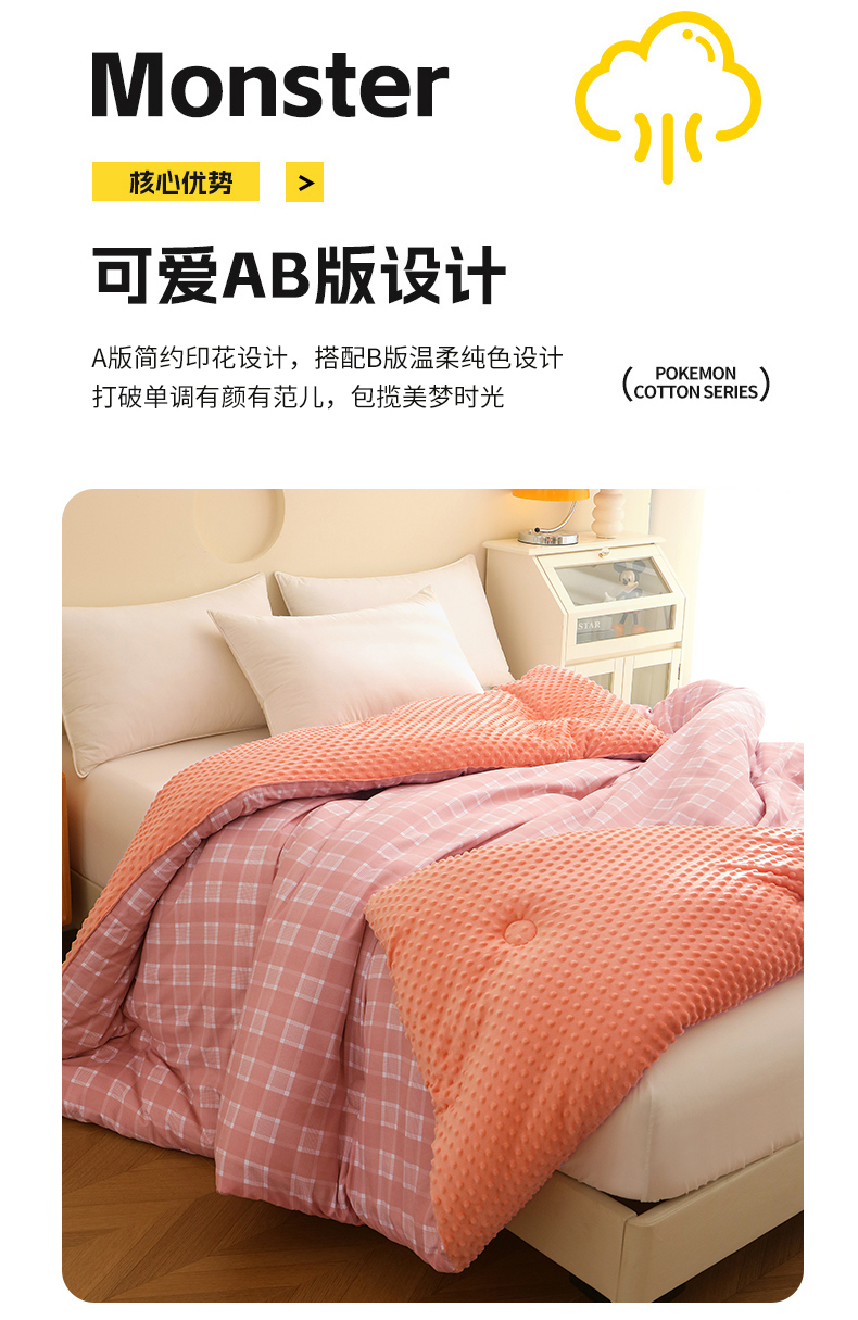 商品名称:(总)爱宝被业 2025新款水洗棉双层纱豆豆绒被