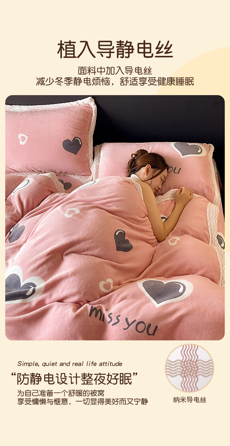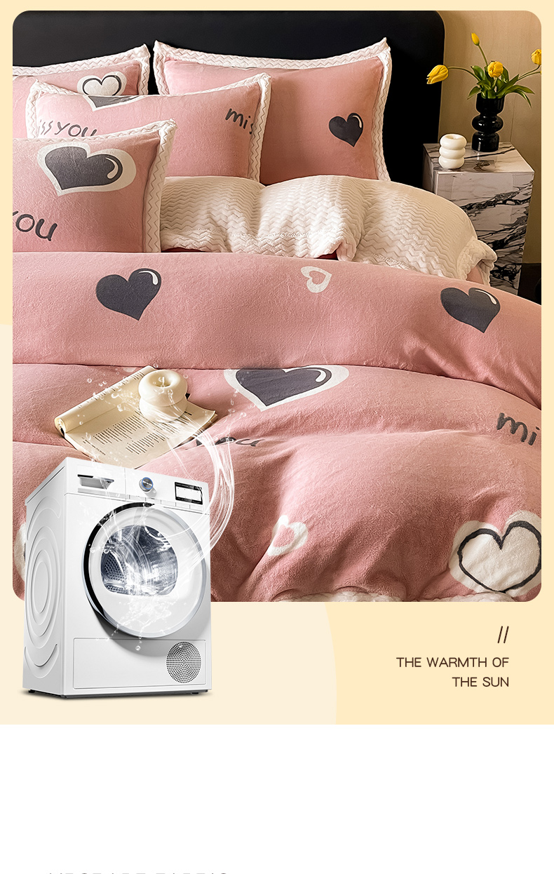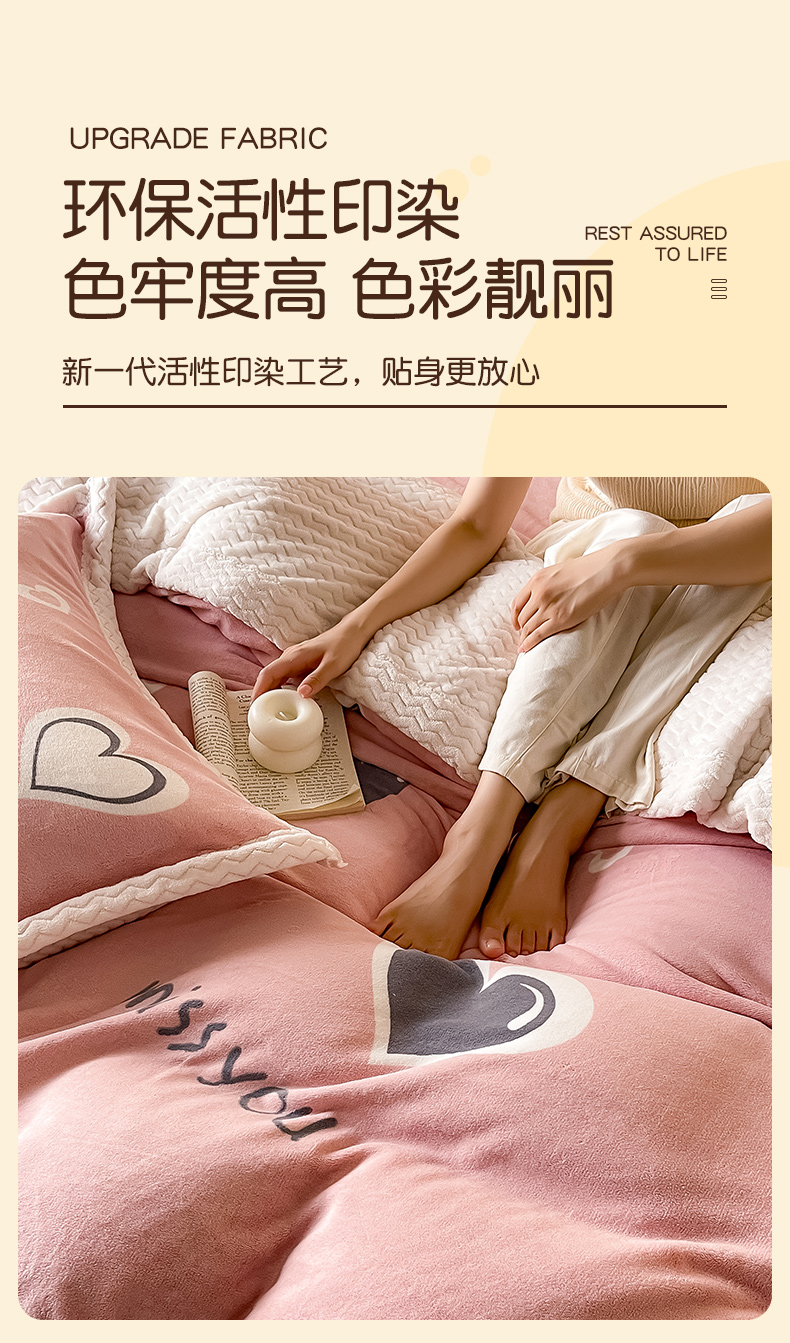 当前位置: 91家纺网 > 商品网购 > 床品套件 > 四件套 > 牛奶绒四件套 > 全季家居 2024新款A类纯色印花波浪大包边牛奶绒贝贝绒加厚保暖四件套 甜心