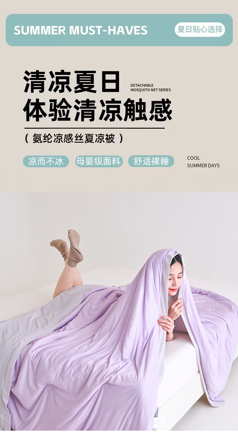 商品名称:默忆 2025新款锦氨纯色双拼凉感丝夏被豆豆夏凉被空调被豆豆被 香芋紫