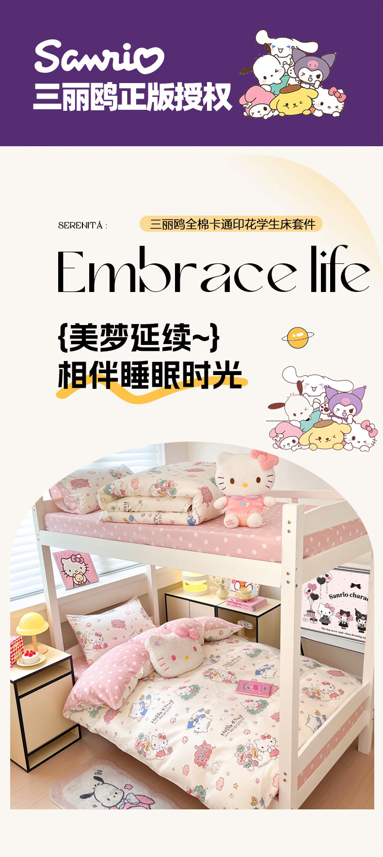 当前位置: 91家纺网 > 商品网购 > 床品套件 > 四件套 > 全棉普通四件套 > 暮思家居 2025新款三丽鸥授权全棉少女印花系列学生宿舍三件套四件套 甜心KT