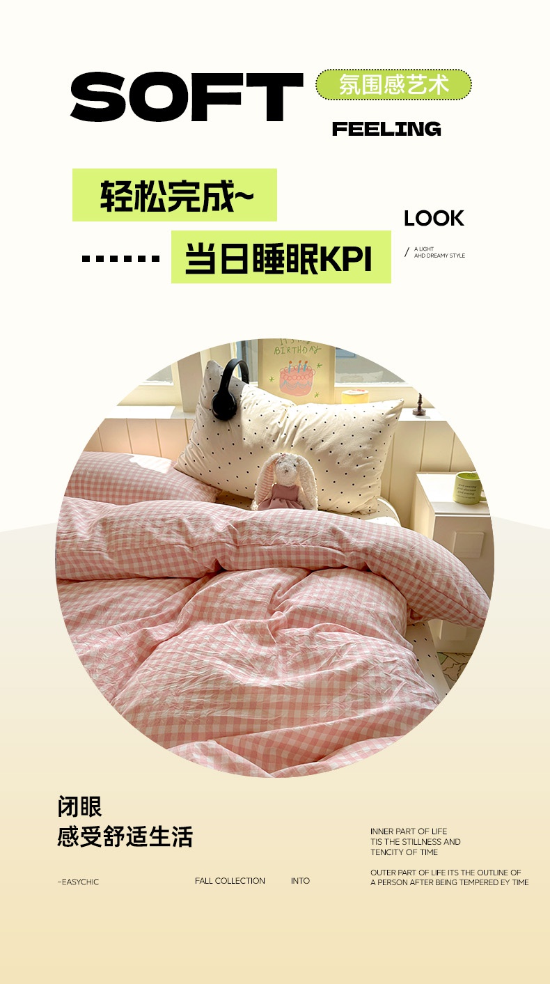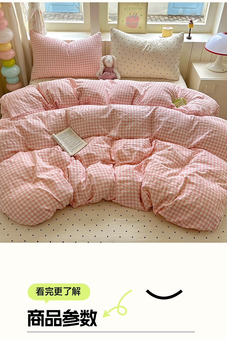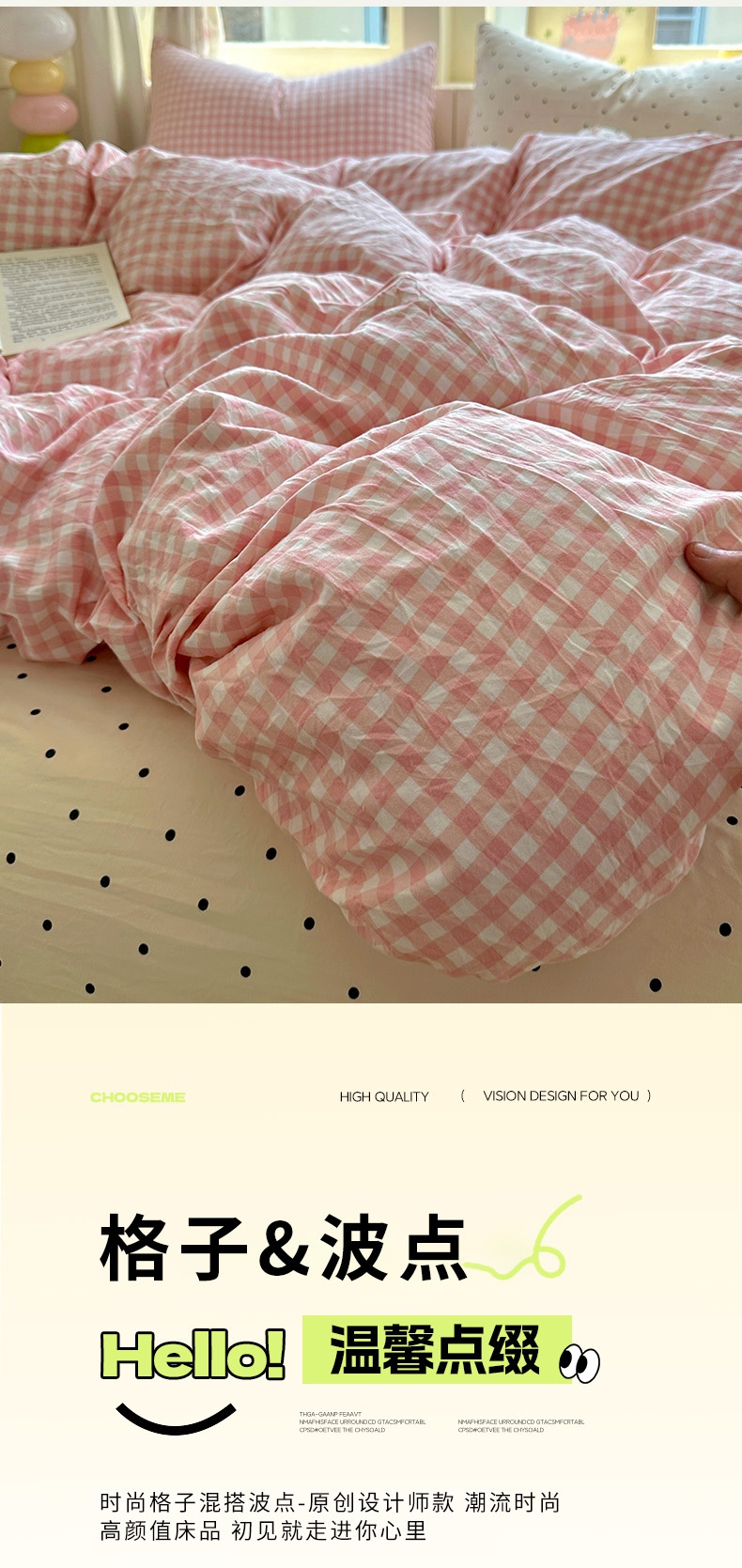 商品名称:(总)冕悠家纺 2025新款少女心超柔加厚混搭格子水洗棉单品被套
