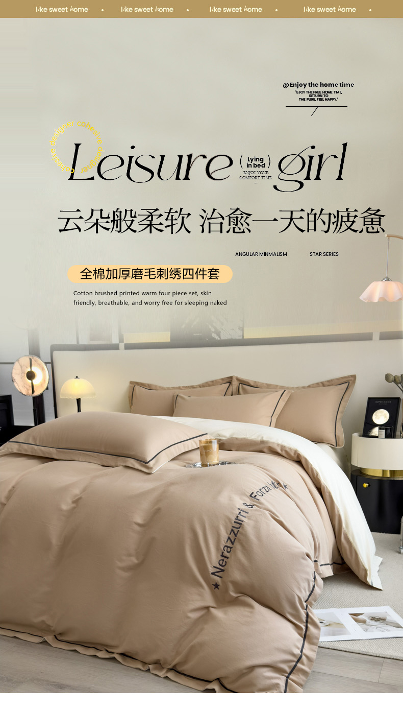 当前位置: 91家纺网 > 商品网购 > 床品套件 > 四件套 > 全棉普通四件套 > 印季家纺 2025新款绣花一字绣全棉纯棉加厚磨毛四件套 奶油驼-奶昔白