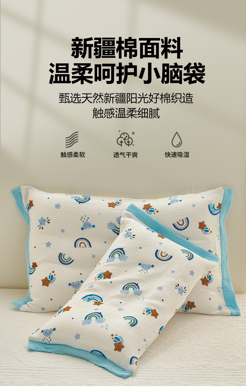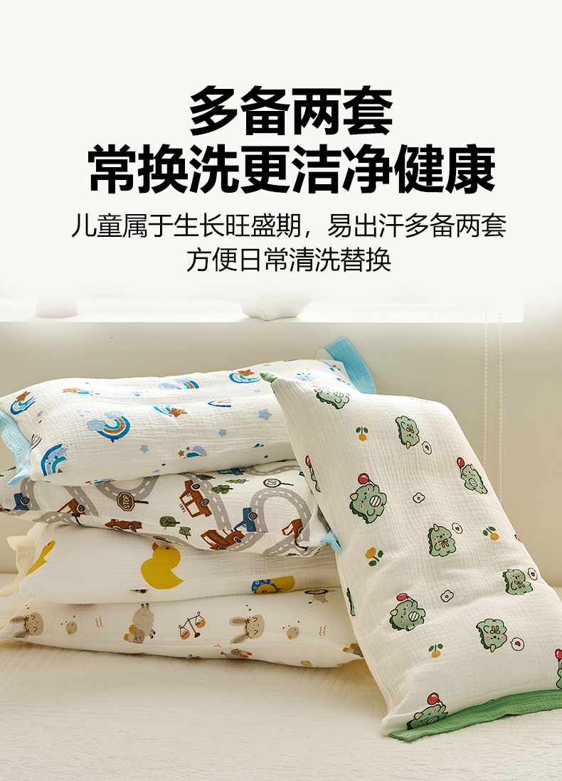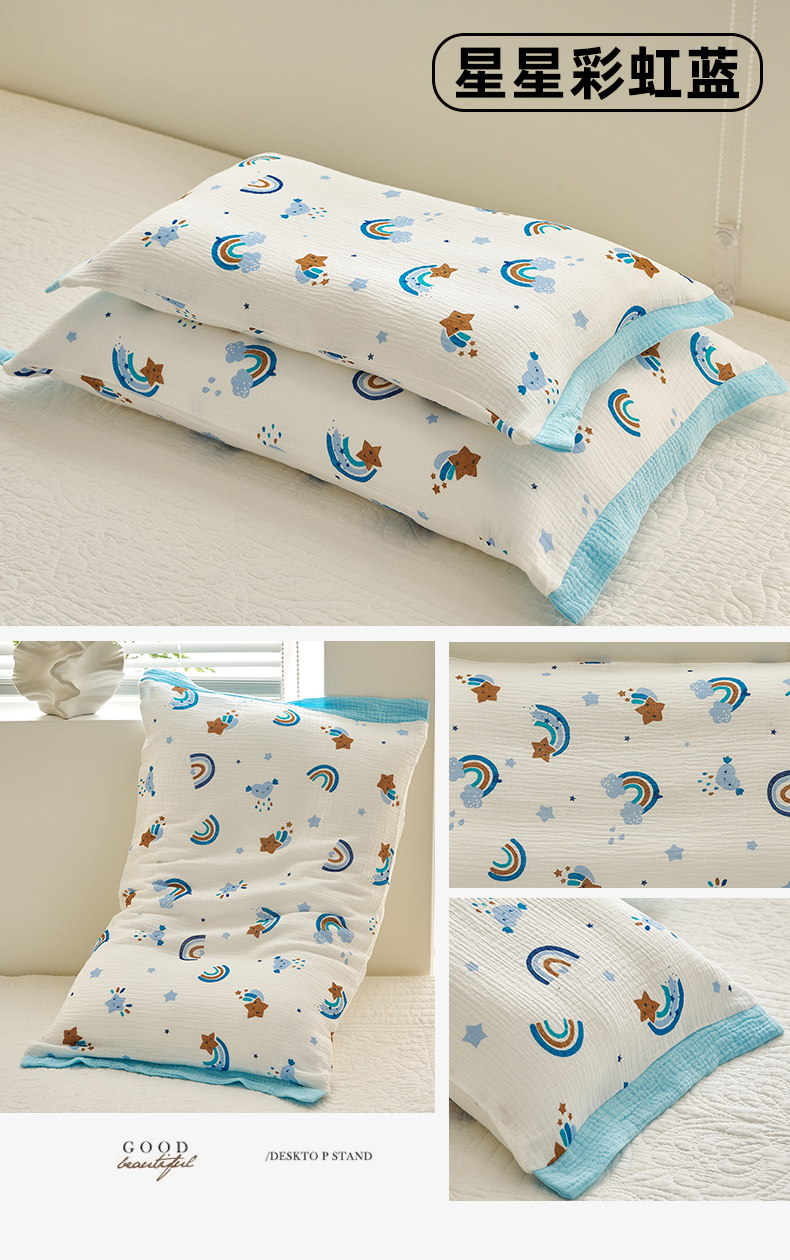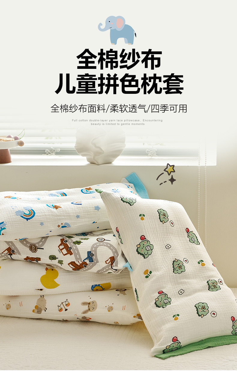 商品名称:(总)乐可 2025新款全棉纯棉纱布儿童拼色枕套单枕套枕头套