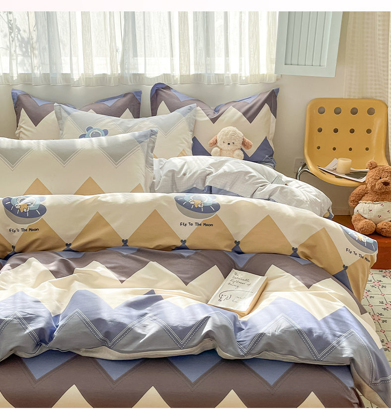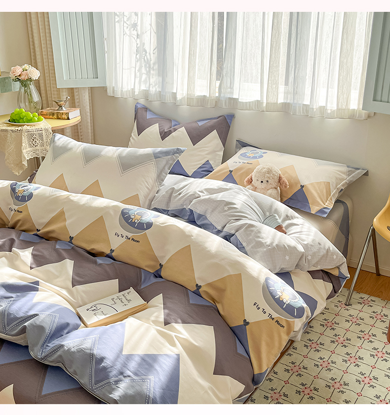 花梦欣 2026新款全棉印花系列简约卡通款单被套 几何飞船