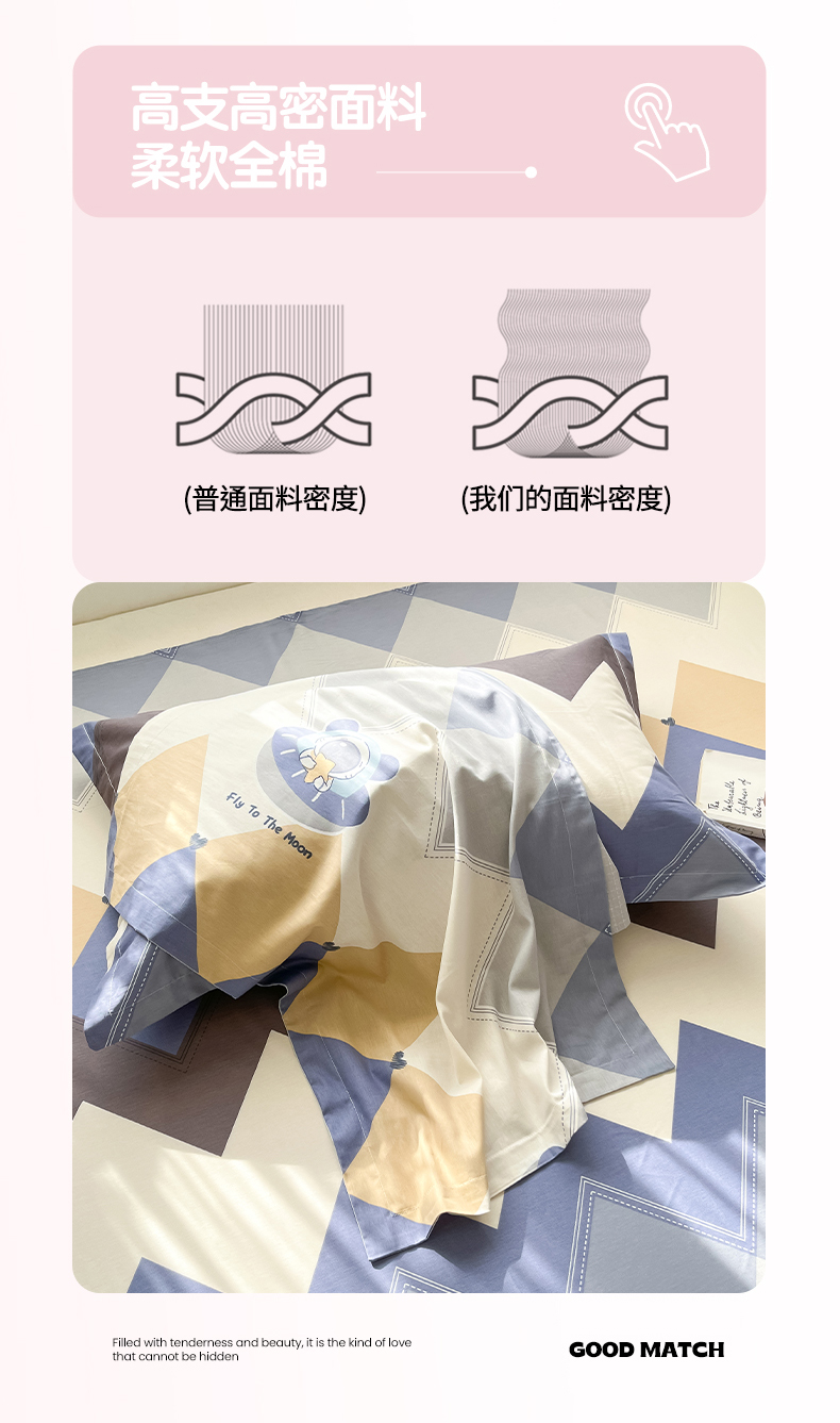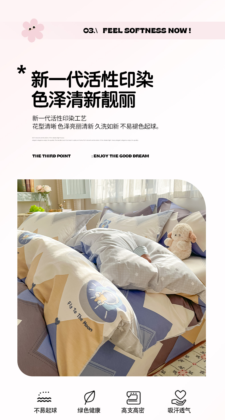 商品名称:花梦欣 2026新款全棉印花系列简约卡通款单被套 几何飞船