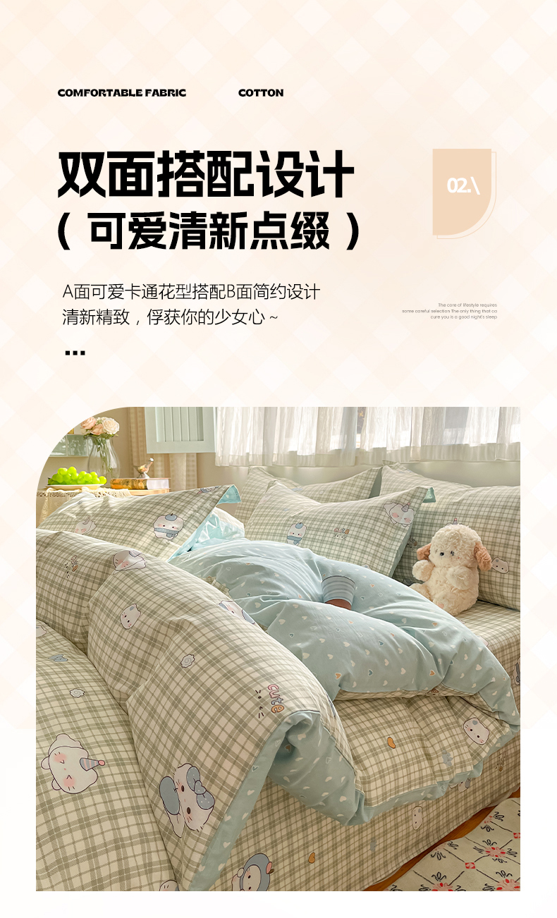 当前位置: 91家纺网 > 商品网购 > 床品套件 > 四件套 > 全棉普通四件套 > 花梦欣 2026新款全棉印花系列简约卡通款四件套 兔子草莓园