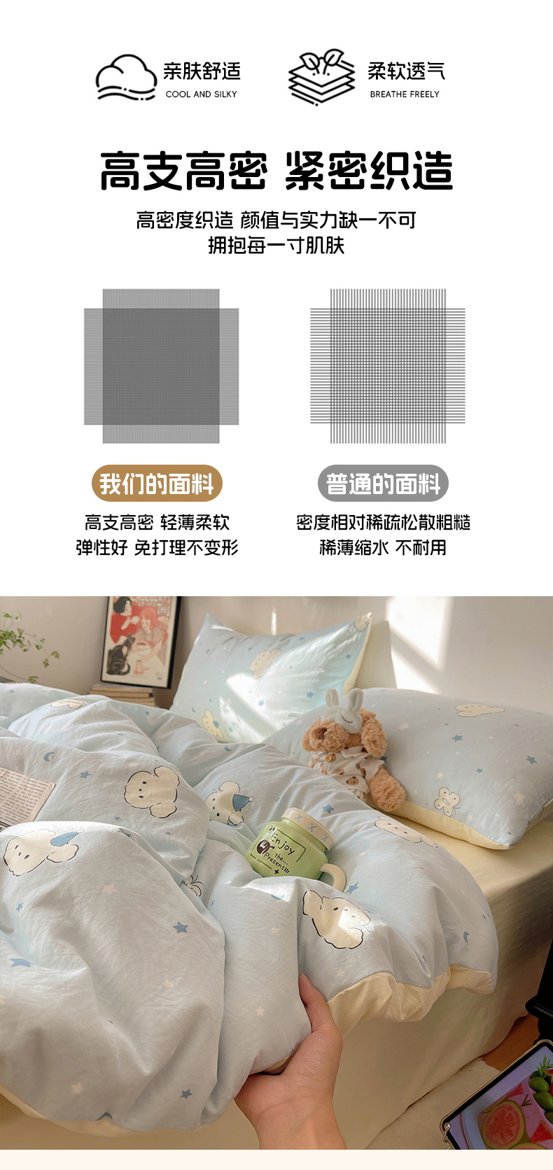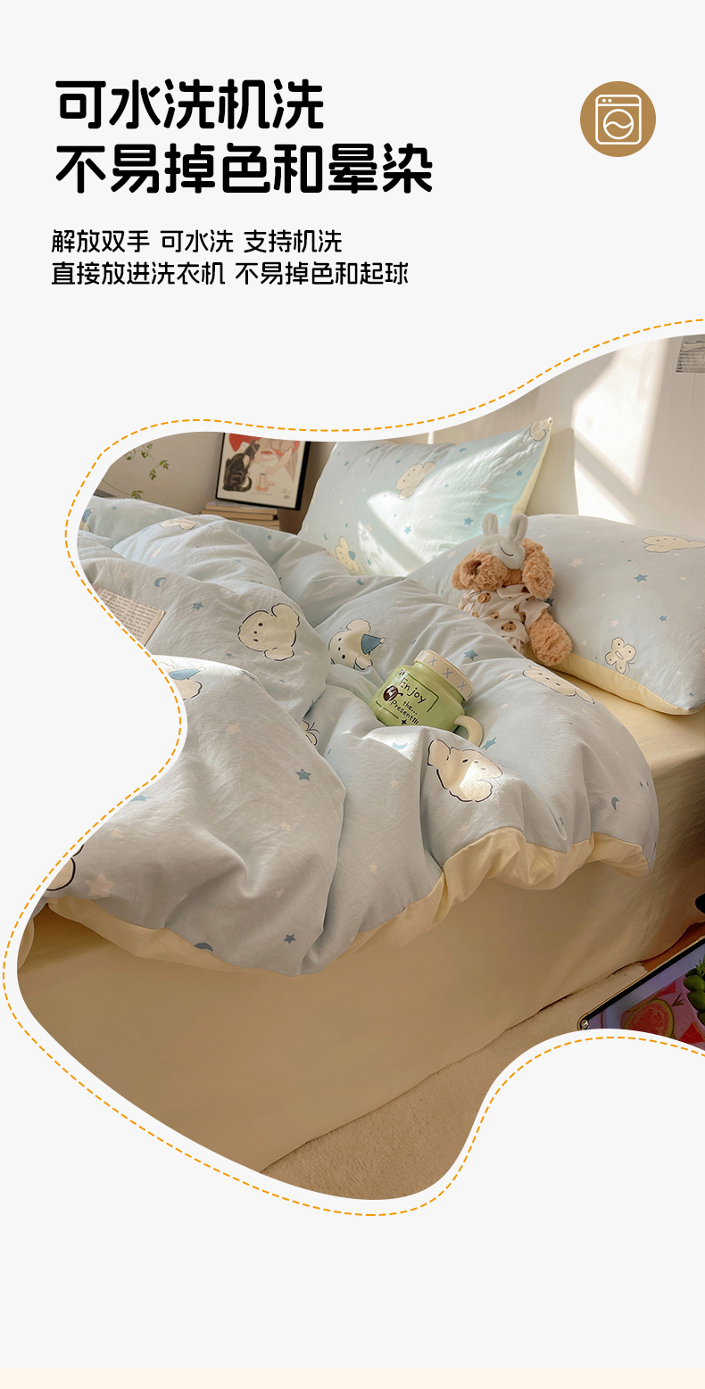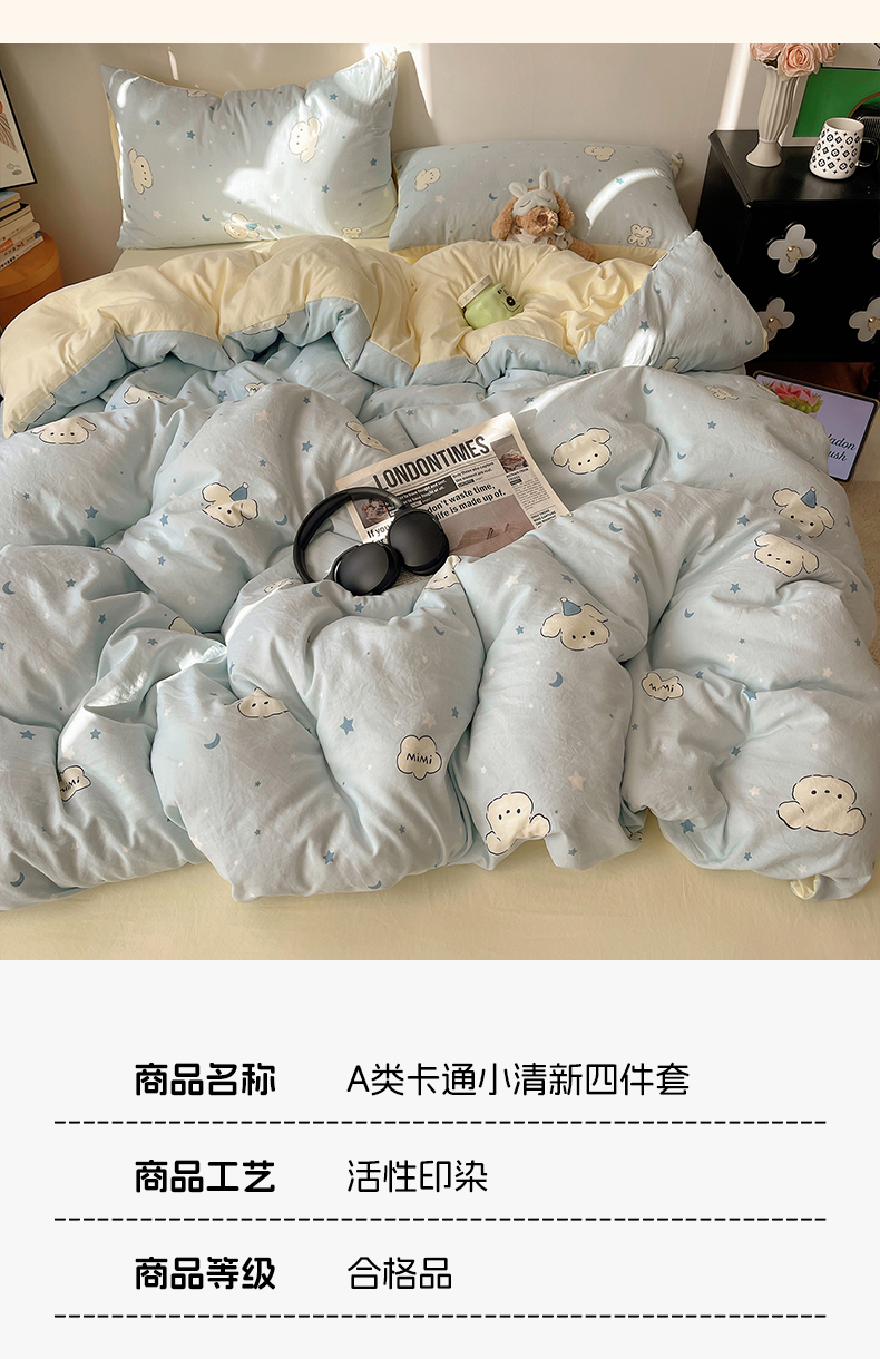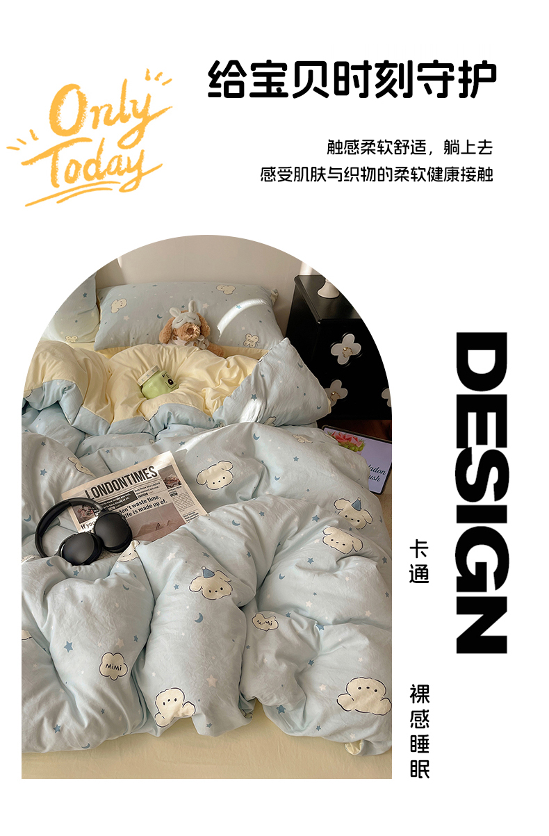 初夏家纺 2026 古法仿棉水洗棉A类四件套被罩床单三件套床上用品卡通可爱【提供买家秀】 雨沫,雨沫