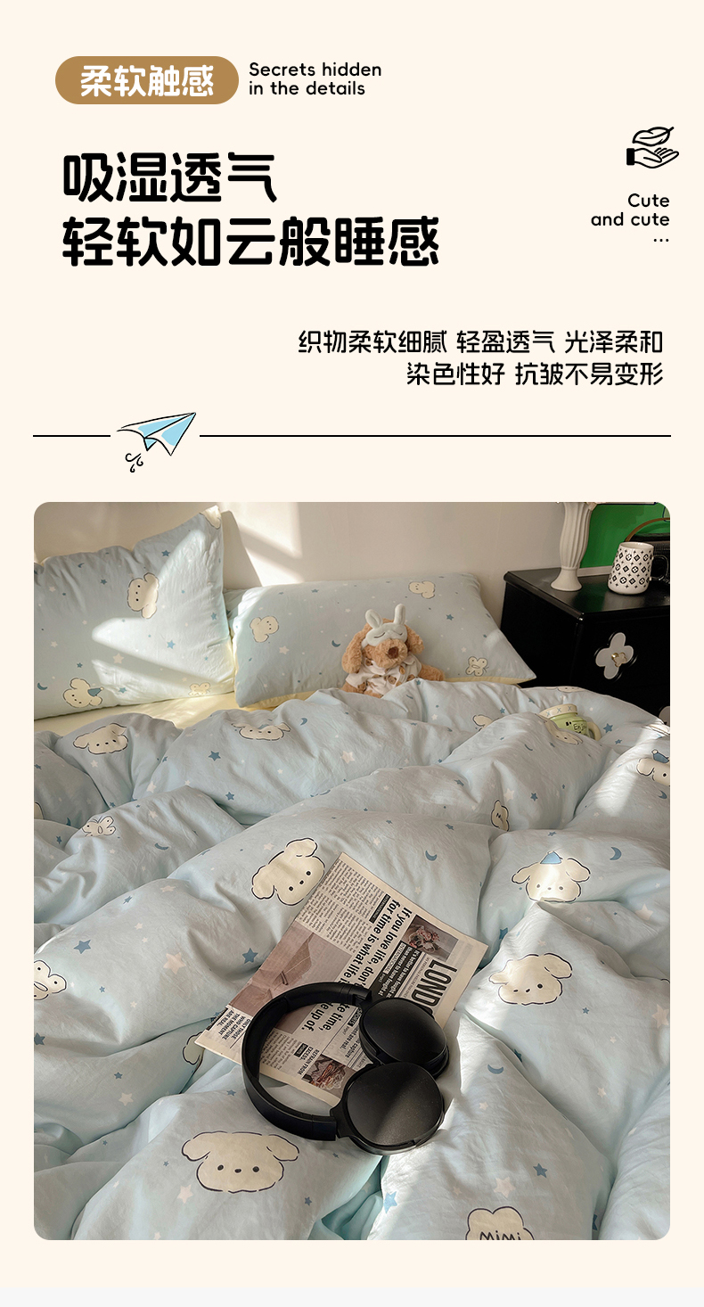 (总)初夏家纺 2026 简约A类水洗棉四件套软糯床上用品被罩床单三件套---【提供买家秀】,海盐拿铁,繁花兔兔,爱情手礼,蛋糕熊熊,安妮的兔,兔野仙踪,汪星蓝町,紫色蝴蝶结